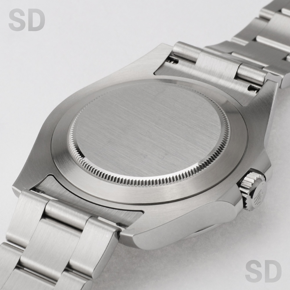 状態です。外装に関しましては、ラグ、ケースサイド、裏蓋、ブレスレット周辺など全体的にごく僅かな擦り傷が確認されますが、いずれも日常使用に伴う微細なものにとどまっております。傷取りのための研磨を行う必要がないほど、非常に美しい状態を維持しており、全体として大変良好なコンディションでございます。