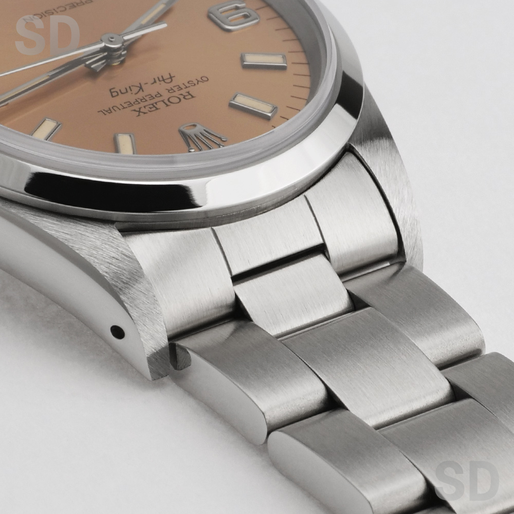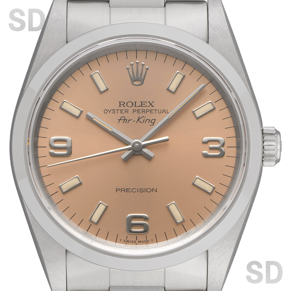 当時はペットネームとして愛されていたエアキングシリーズ。非クロノメーターでありながら、他の日付なしモデルと同様のムーブメントCal.3000を搭載しており安定感のある精度を保ちます。スタンダードでシンプルなデザインですので、スタイルを選ばずラフにご使用出来る1本。ロレックス入門モデルとしても、普段使い分け用セカンドウォッチとしても人気の高いモデルです。