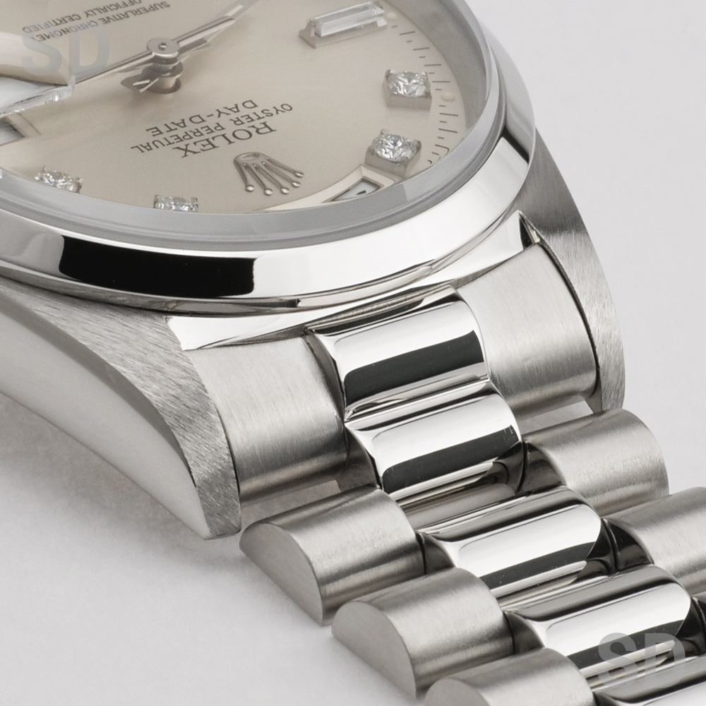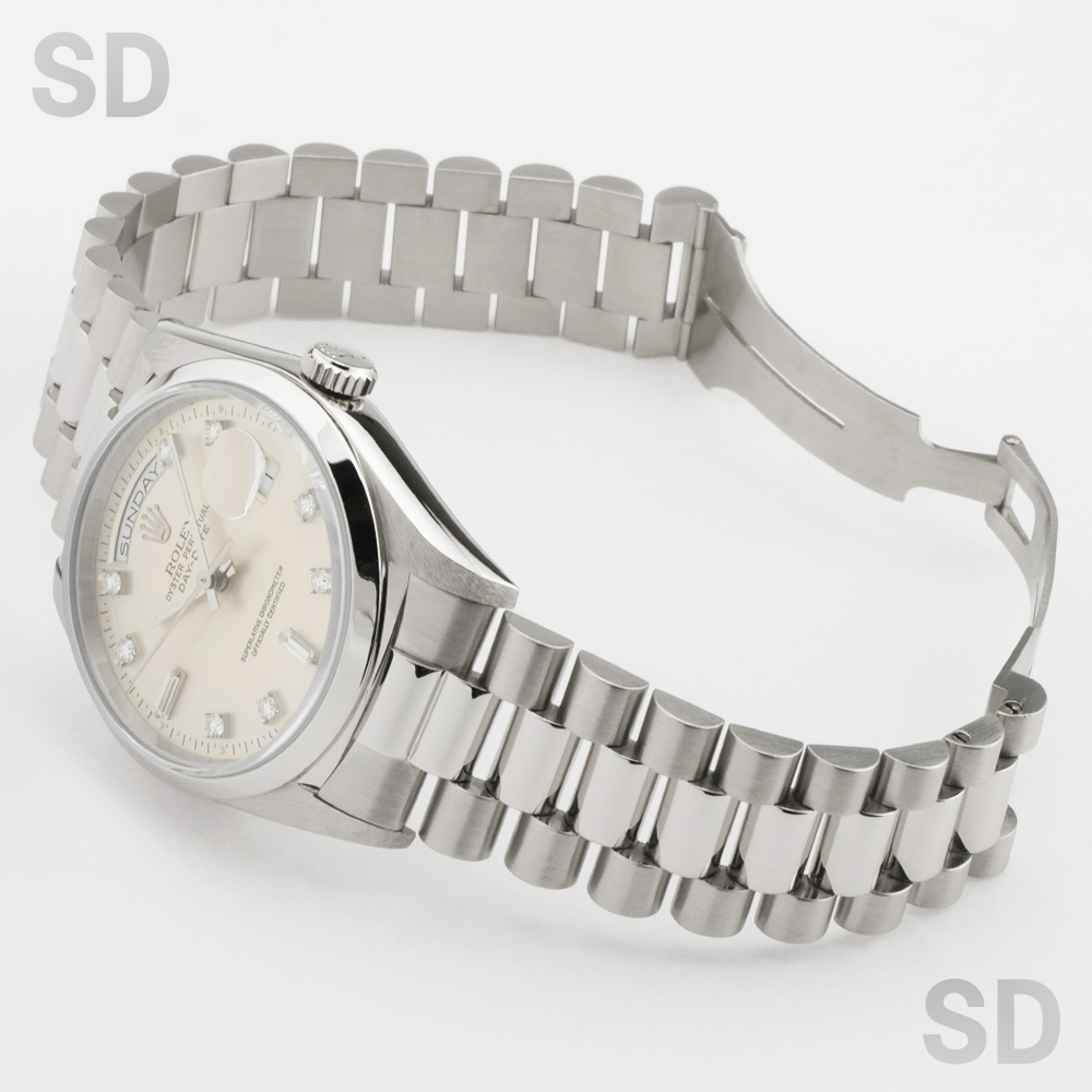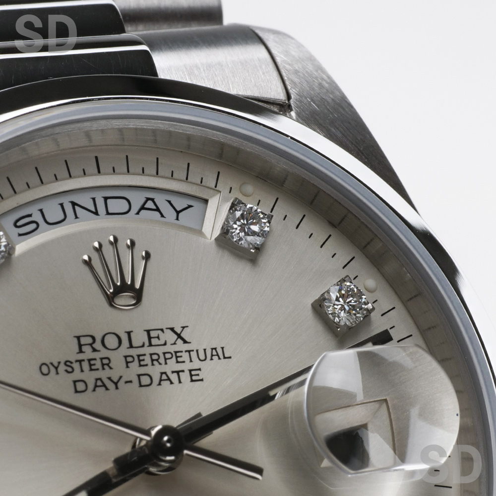 ロレックスの最高峰モデルとされるデイデイトの中でも、最高ランクであるPt950プラチナを使用したモデル。第5世代にあたるこちらのデイデイトはCal.3155搭載で日付と曜日のクイックチェンジが可能となり操作が簡単になったことで現在でも人気が高いシリーズです。シンプルに感じるスムースベゼルを装備したモデルですが、透き通るような輝きを放つプラチナは、別格のオーラを感じさせます。プラチナ独特の重量感も含めて最高峰で最上級のモデルを是非腕元でご堪能ください。