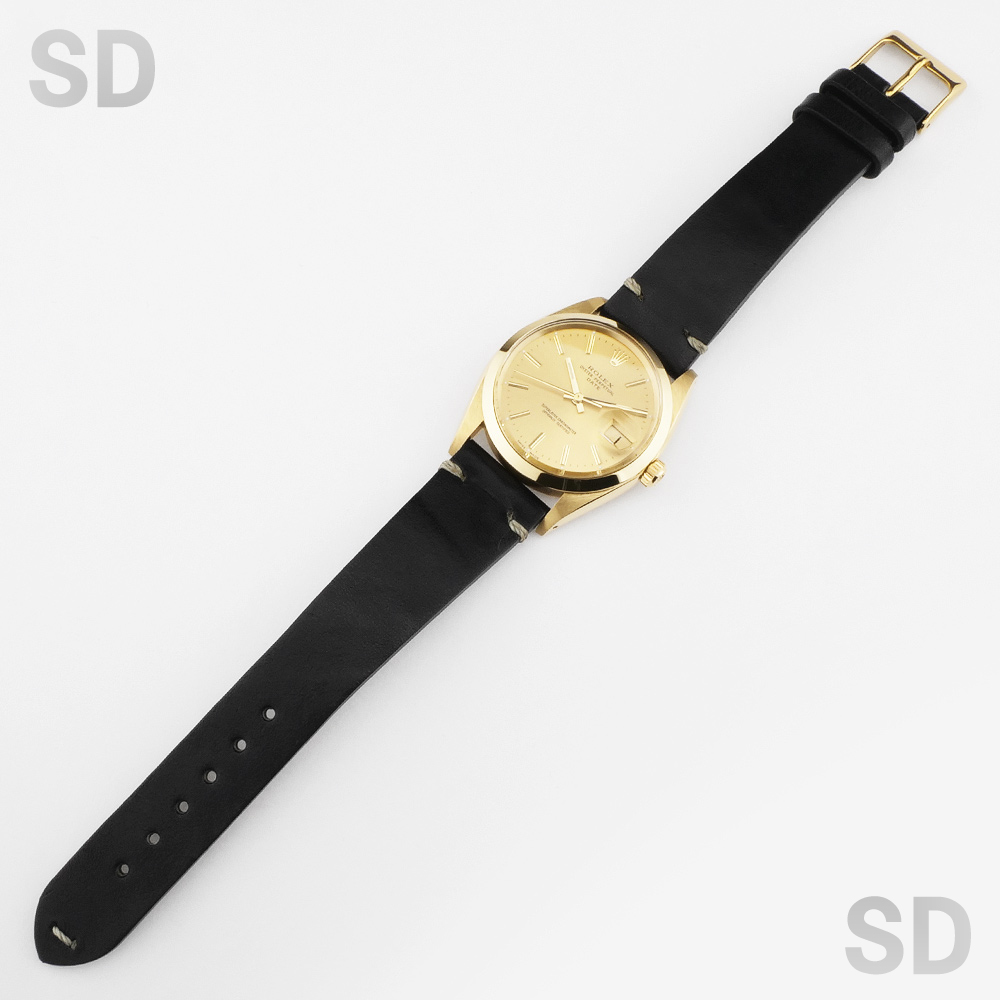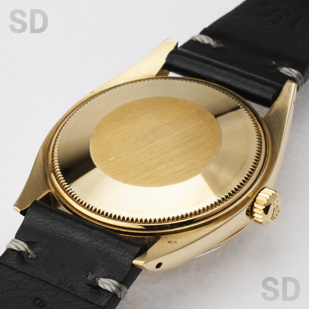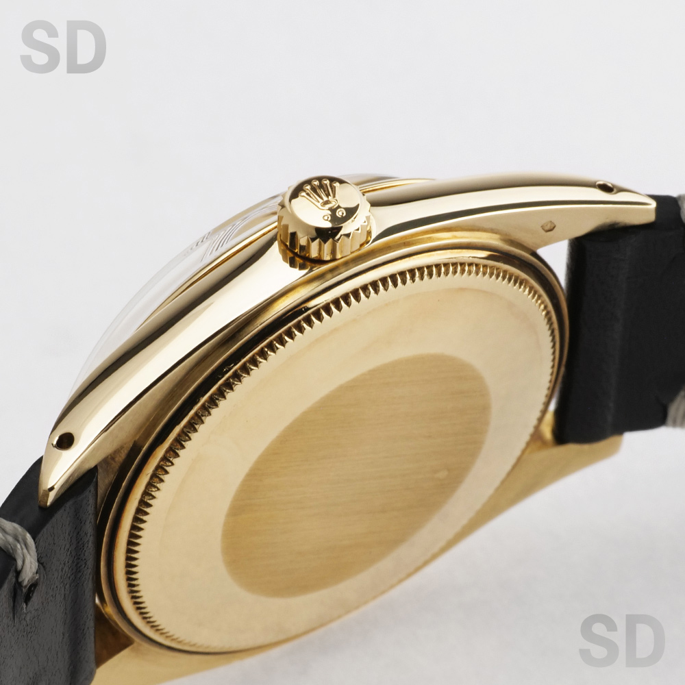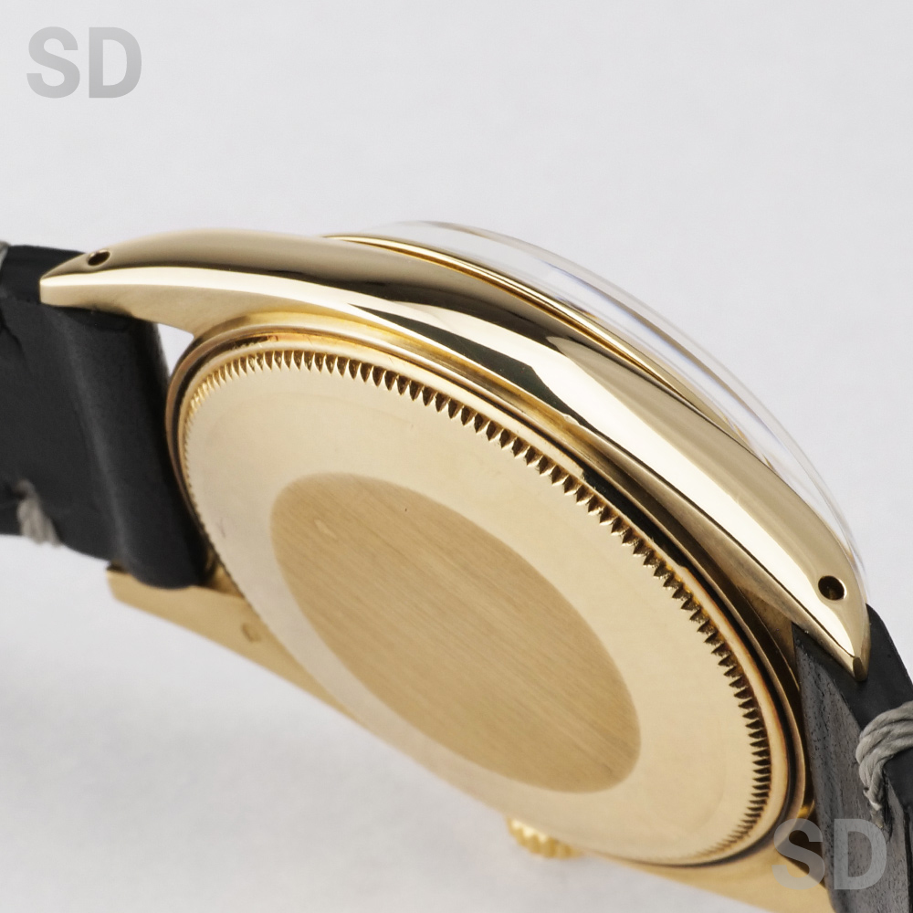 珍しいK14イエローゴールドで製造されたモデル。K14イエロゴールド特有の透き通るような輝きはとても上品で、まさにワンランク上のヴィンテージウォッチといえます。34mmの現代でいえば少々小振りサイズとなるパーペチュアルデイト。その分普段使いするには邪魔にならず、使い勝手は抜群です。革ベルトをカスタマイズすることで、お時計の雰囲気も変わり、ファッションの一部としてもお楽しみいただけます。