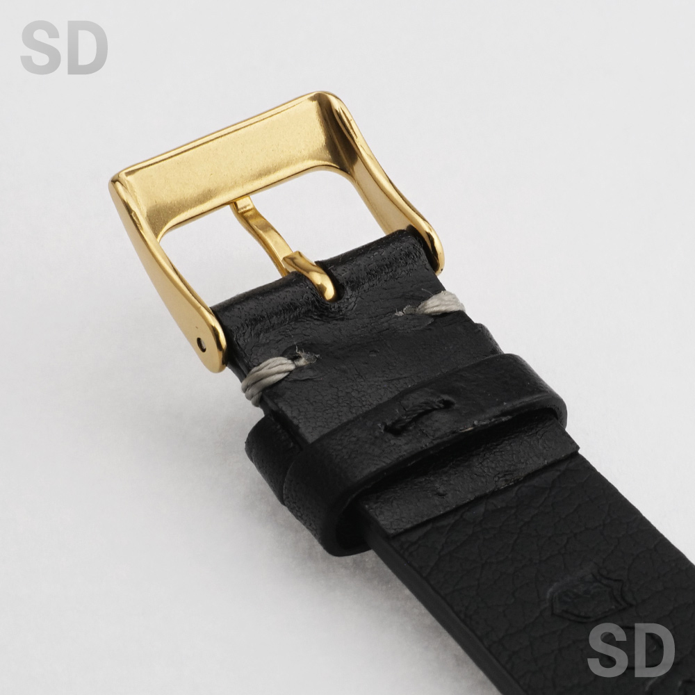 社外革ベルトおよび社外尾錠(金メッキ)が装備されております。革ベルトには僅かにシワがございますが、使用感も少なく、まだまだお使いいただけます。