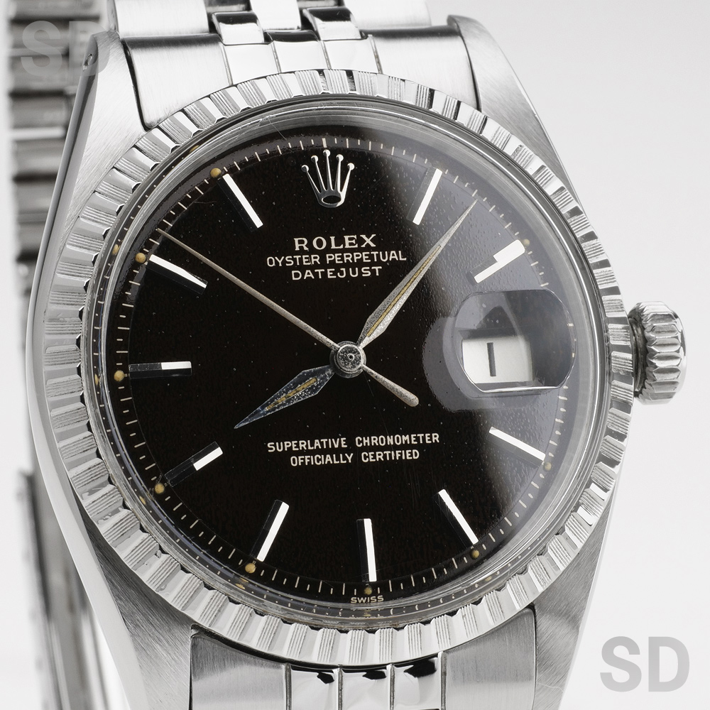 文字盤の外周が段落ちしているのが特徴の4桁リファレンスのヴィンテージデイトジャストシリーズ。その中でもこちらはミラーダイヤルがブラウン調になっている通称「トロピカル」と呼ばれる文字盤です。独創的な艶のあるブラックミラーが経年変化によってエイジングされ変色したものであり、ヴィンテージファンの間で圧倒的な支持を受けております。その他にも、アルファハンドや巻きブレスレットにデベソバックルが装備されていたりとヴィンテージ感溢れるマニアには堪らない1本です。