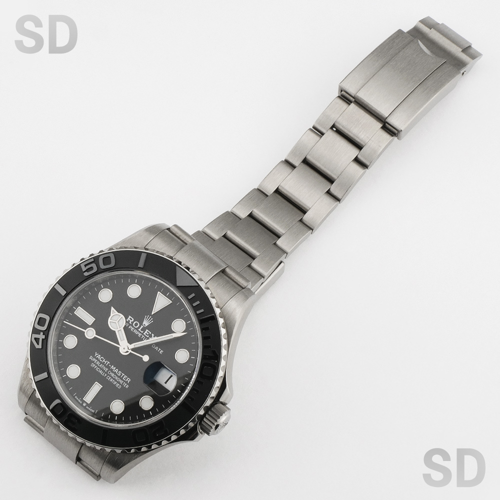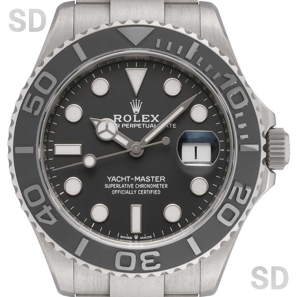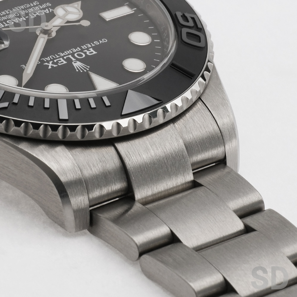 2023年に登場したチタン製ヨットマスター。ロレックスが独自開発したチタニウム「RLXチタン」を全面に採用し、重さは約107gという軽さ。文字盤はインテンスブラックと名付けられたマットブラックで非常に視認性が良く、ヨットマスター特有の両回転式ハイテクセラミック製セラクロムベゼルは、表面にはブラスト仕上げが施され数字と目盛りはポリッシュ仕上げにより光沢をもたせている為、立体感が生まれています。最新鋭のCal.3235を搭載しパワーリザーブ約70時間と日常使いにも特化。スポーティでオンオフ問わず活用できるモデルです。