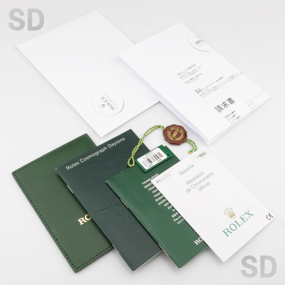 付属品としては、メーカーの国際保証書および純正BOX、シリアルナンバー入りタグ、クロノメータータグ、修理明細書、冊子、パスケースが揃っております。