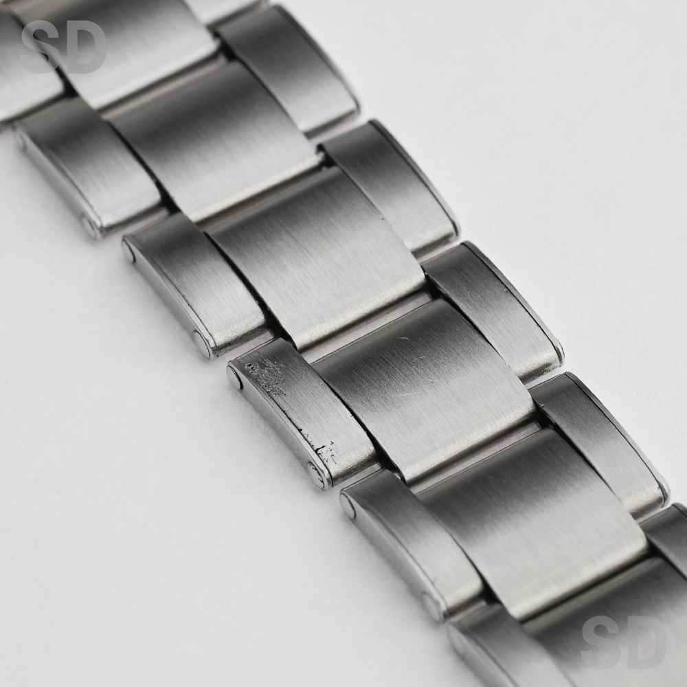 ブレスレットの伸びは年代相応であり、腕周りにサイズをしっかり合わせていただければご使用する事への支障はありませんが、コマ同士の隙間は少々感じると思われます。