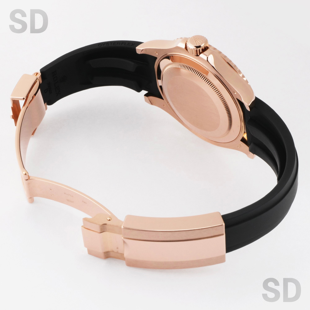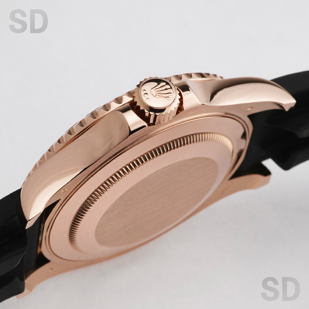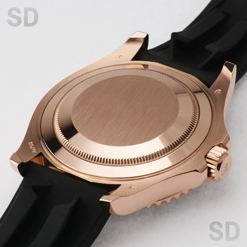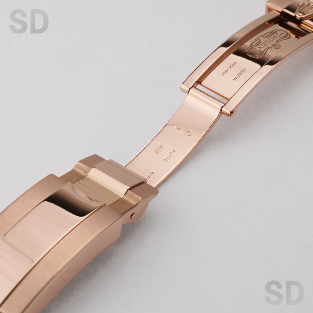本モデルは、ケースにロレックス独自の合金、エバーローズゴールドが採用されており、上品で温かみのある輝きが特徴です。加えて、ブラックセラミック製のマットベゼルがエレガントさとスポーティさを巧みに融合させ、圧倒的な存在感を演出しております。