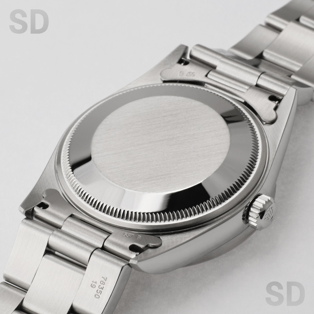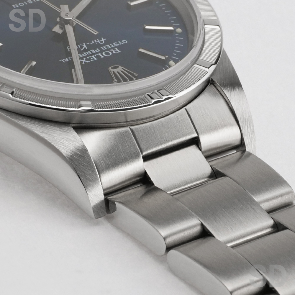 当時はペットネームとして愛されていたエアキングシリーズ。非クロノメーターでありながら、他の日付なしモデル同様のムーブメントCal.3000を搭載しており安定感のある精度を保ちます。こちらのモデルにはエンジンターンドベゼルを装備しておりますので、ドレスウォッチとはいえスポーティなデザインとして人気のモデル。シンプルなデザインですので、スタイルを選ばずラフにご使用出来る1本です。