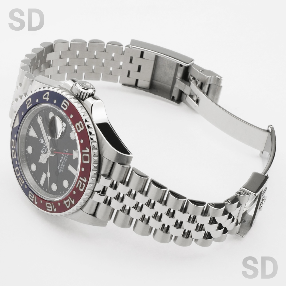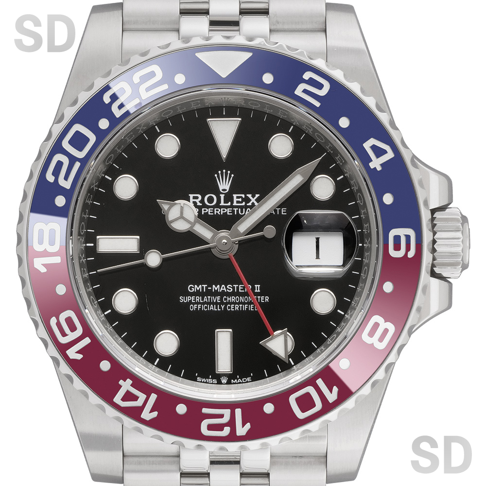 通称「ペプシ」とも称され、ツートーンで構成されたセラミック製ベゼルが印象的な人気モデルで、その高い実用性と独自の存在感から、常に高い評価を得ております。ブレスレットはジュビリータイプが装着されております。