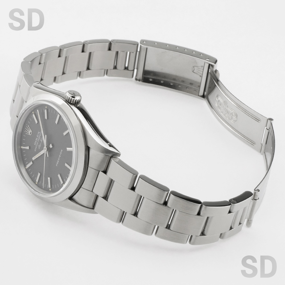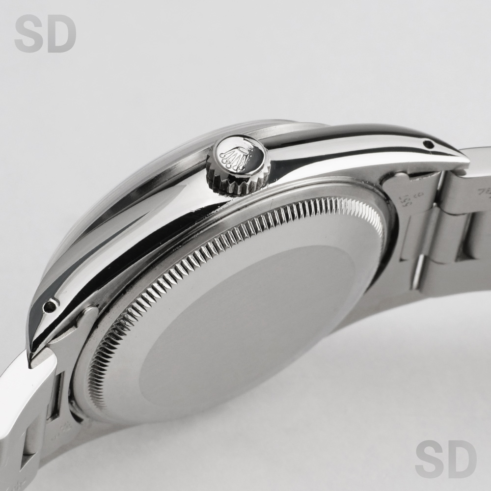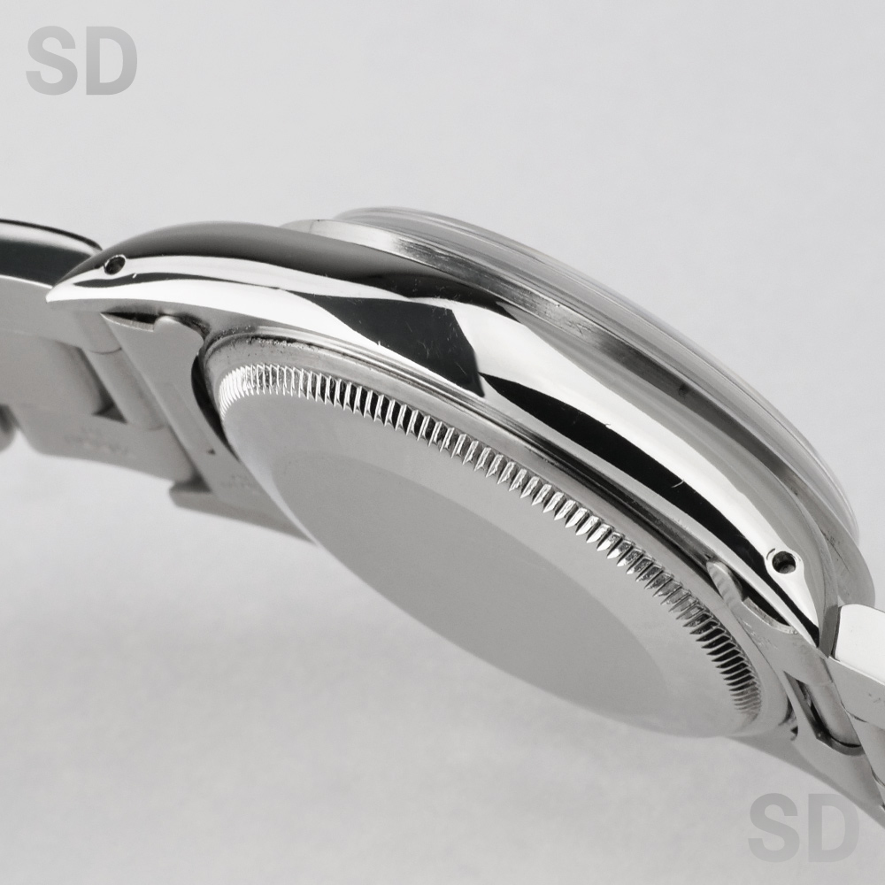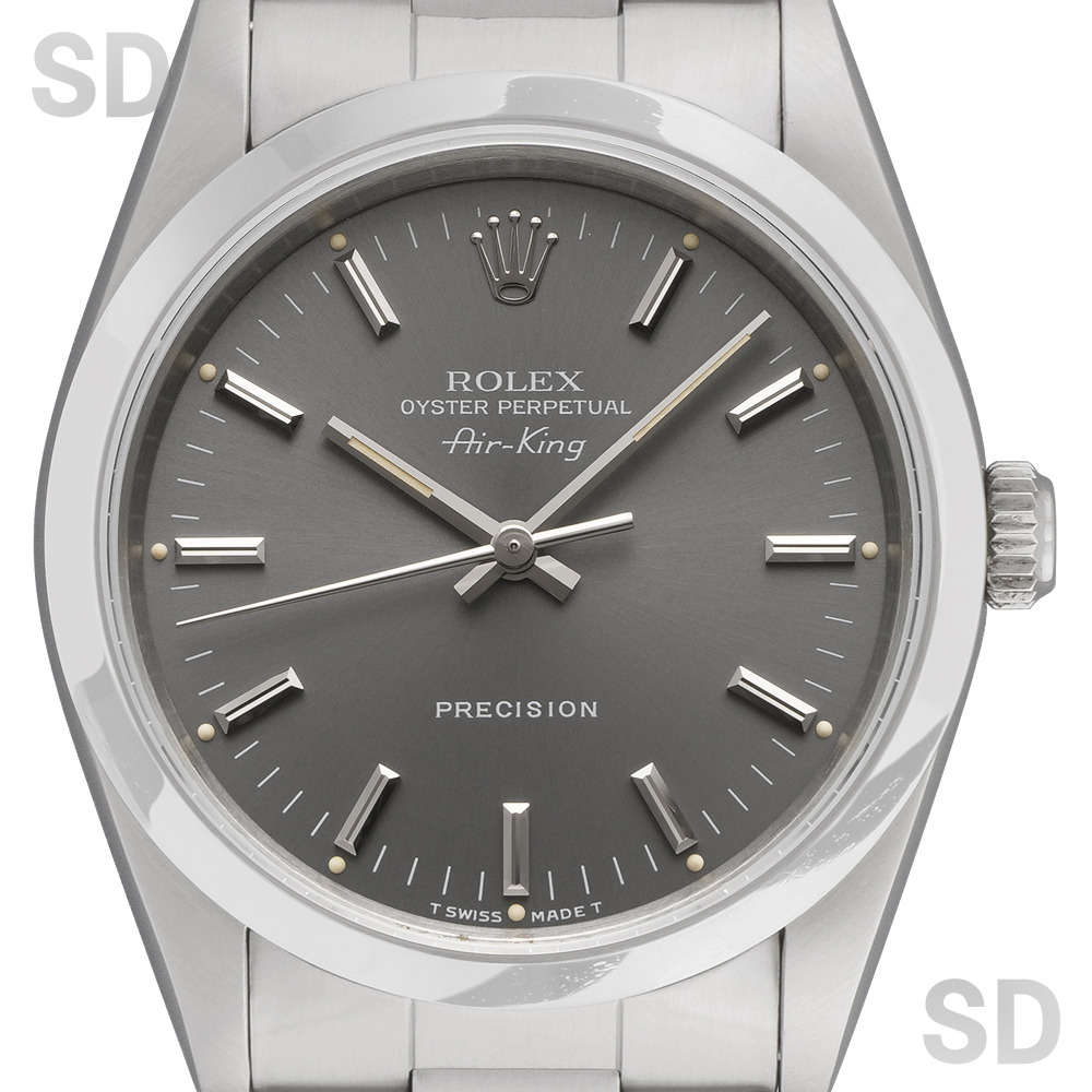 当時はペットネームとして愛されていたエアキングシリーズ。非クロノメーターでありながら、他の日付なしモデルと同様のムーブメントCal.3000を搭載しており安定感のある精度を保ちます。スタンダードでシンプルなデザインですので、スタイルを選ばずラフにご使用出来ます。また、こちらのグレー文字盤は1990年代初期にのみ採用されていたカラーリングであり、個体数はあまり多くありません。落ち着いたグレーカラーが渋い1本。ロレックス入門モデルとしても、普段使い分け用セカンドウォッチとしても人気の高いモデルです。