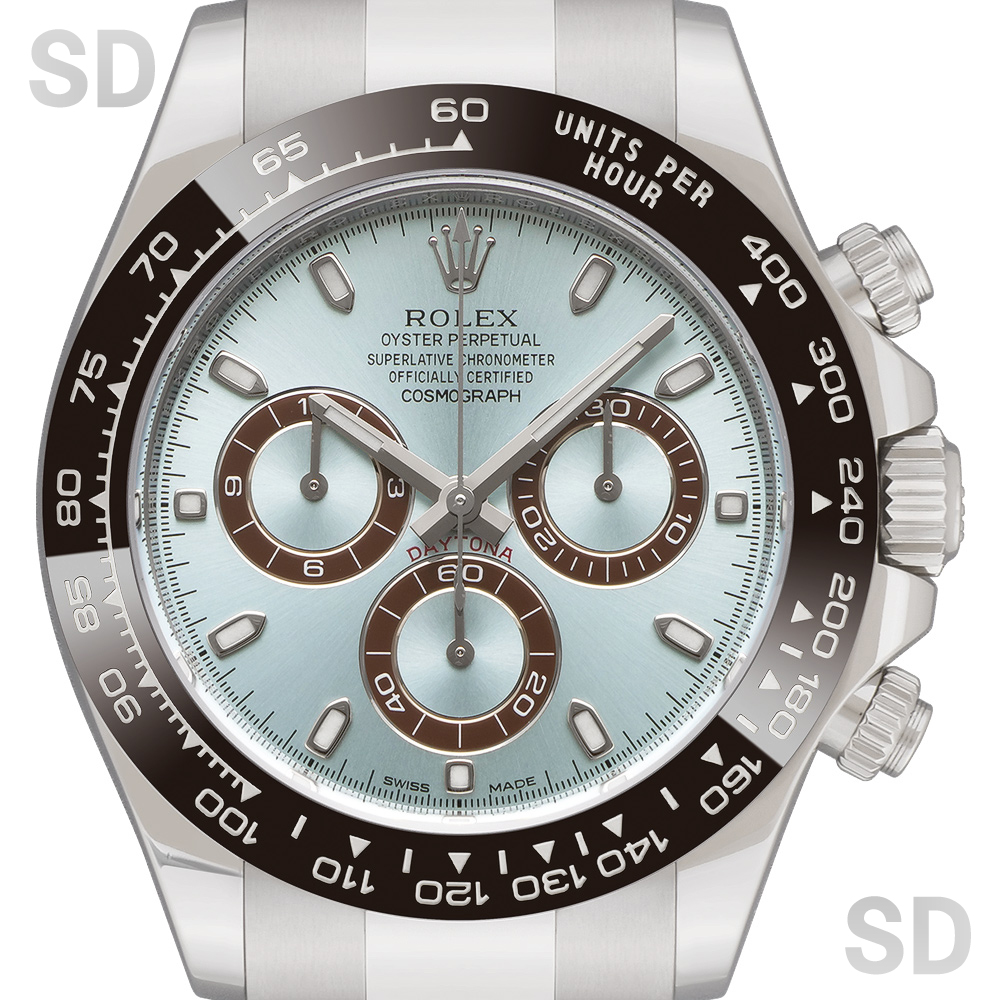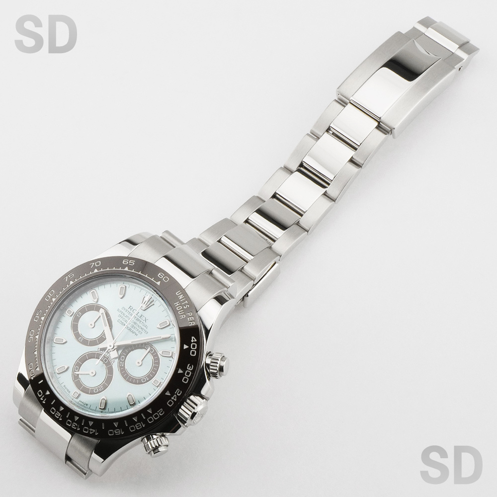 デイトナの歴史において象徴的な存在であるプラチナ×アイスブルーの組み合わせは、コレクション性はもちろんのこと、ステータス性や希少性の観点でも非常に高く評価され続けております。この機会にぜひご検討くださいませ。