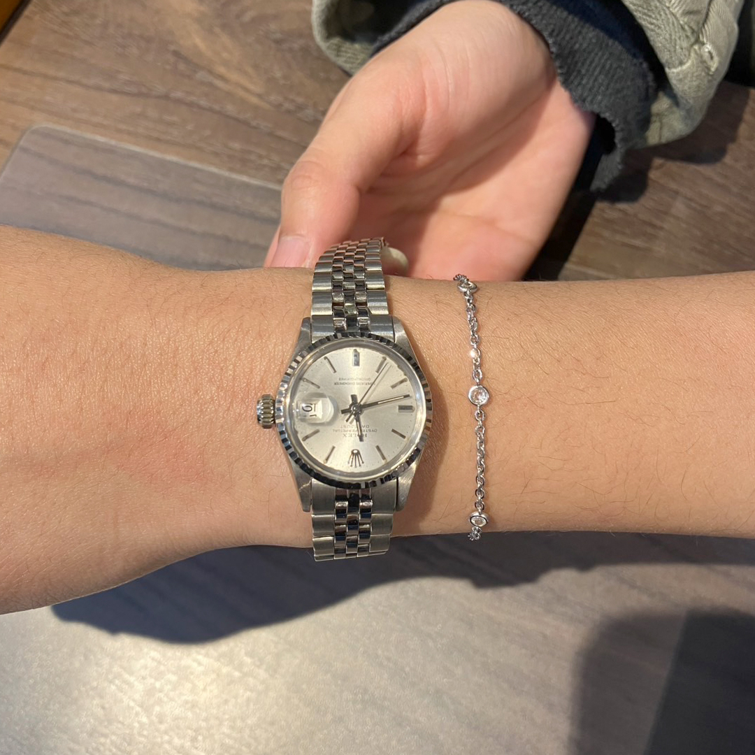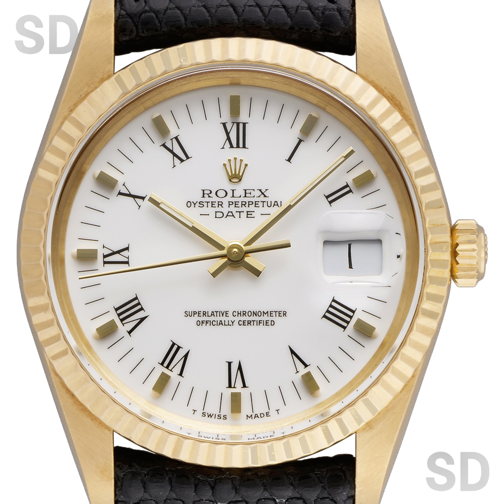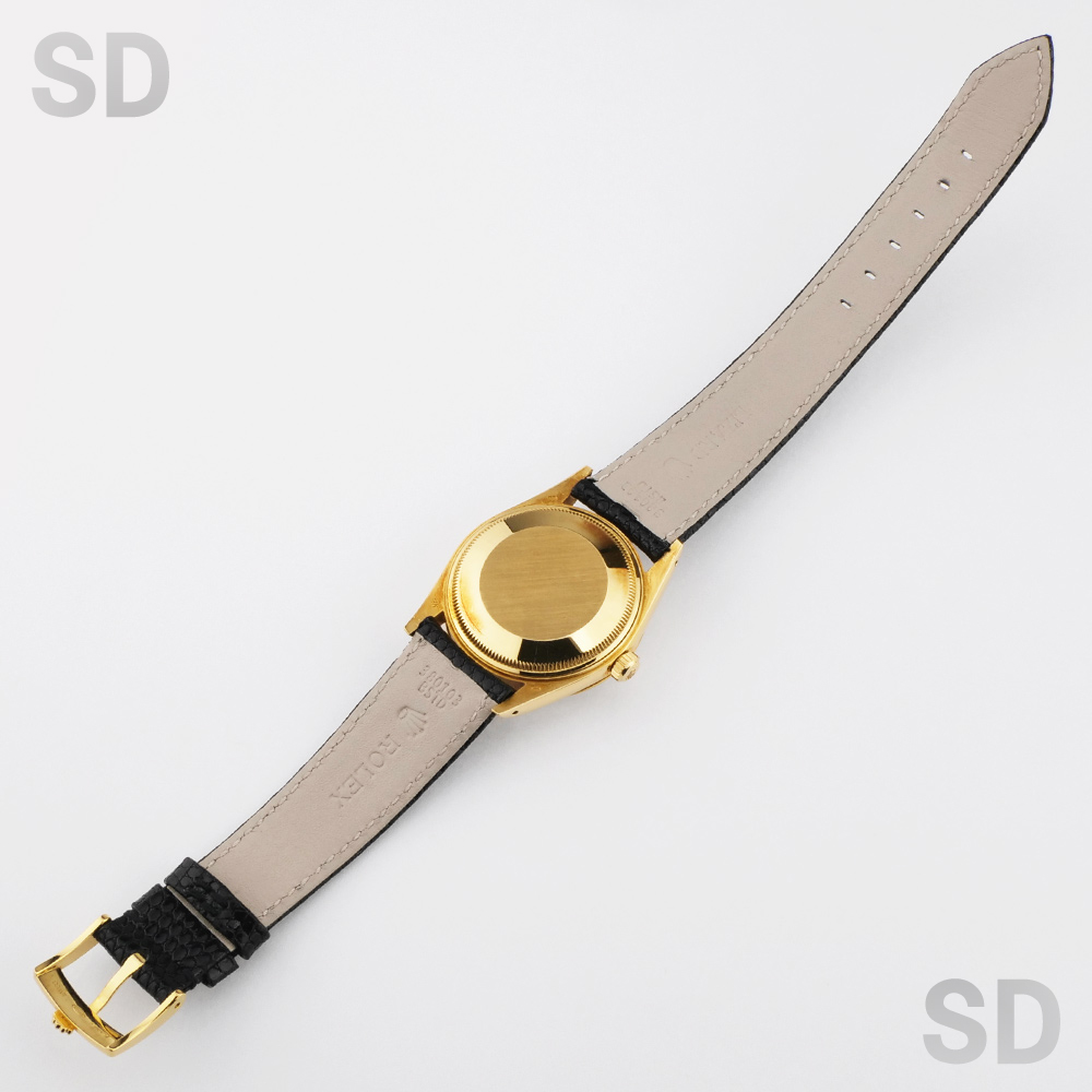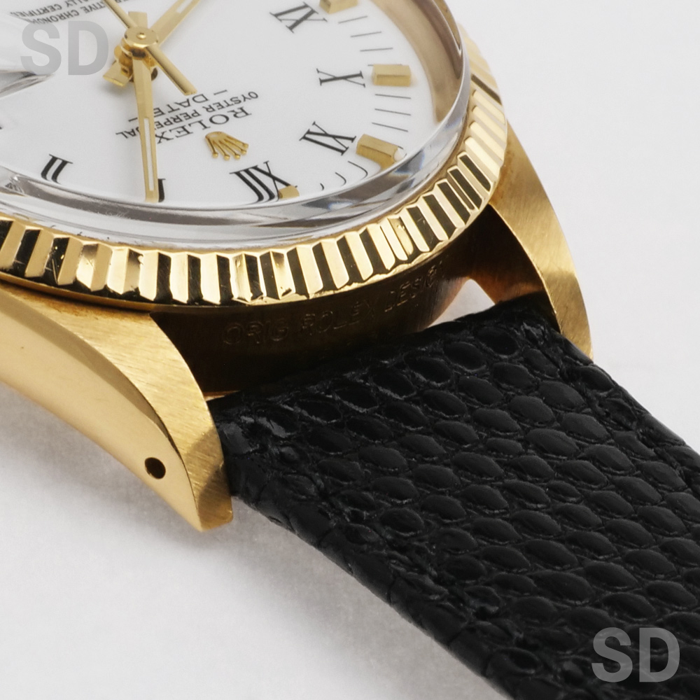 こちらは1980年代に製造されたパーペチュアルデイトシリーズ。K18イエロゴールド無垢で製造されたとても珍しい個体あり、フルーテッドベゼル装備でデザインはデイトジャストに類似します。あくまでもヴィンテージ区分のモデルですので強化プラスチック風防を装備しておりますが、このシリーズよりハイビートとなるCal.3035を搭載し日付けの早送りも可能となりましたのでとても実用的となりました。