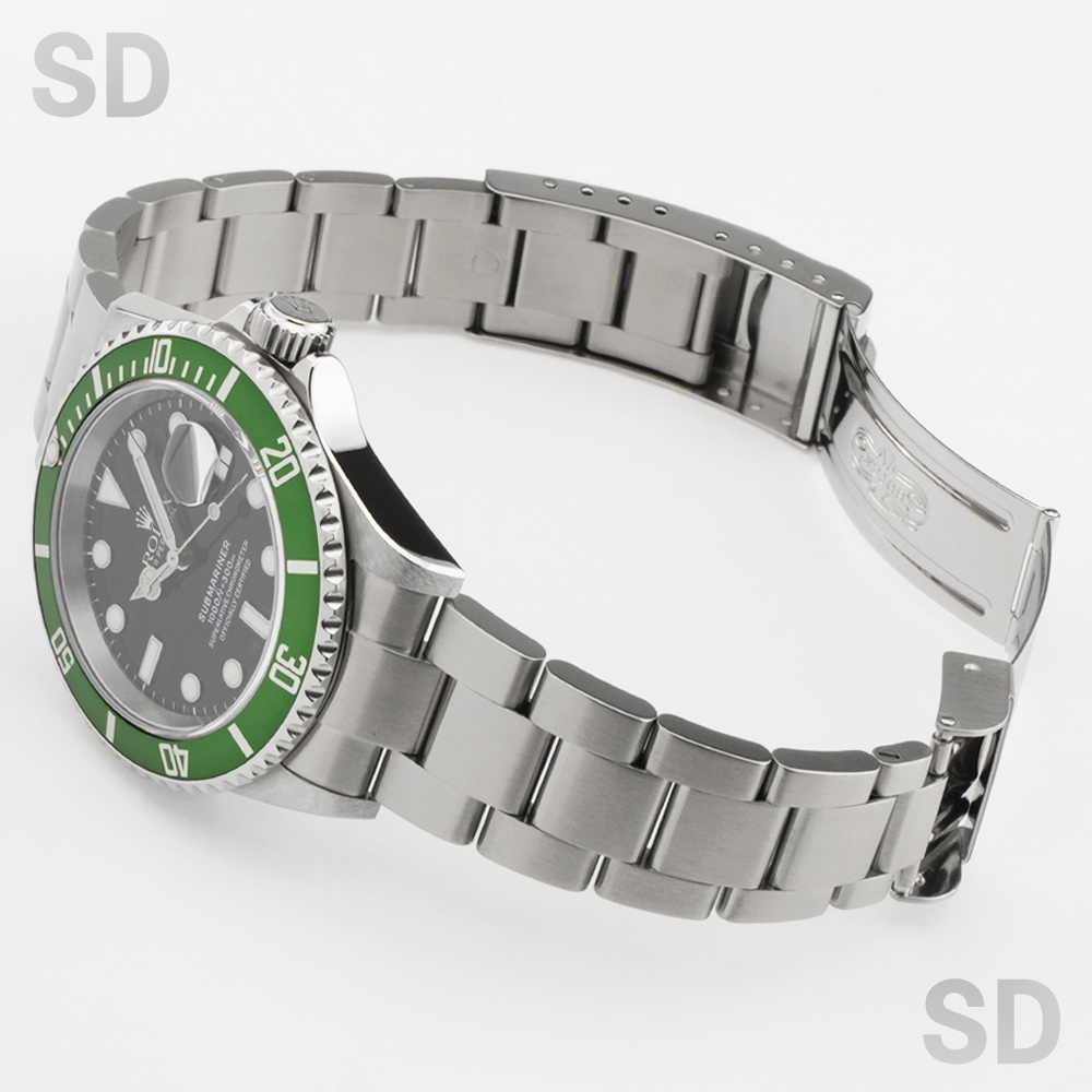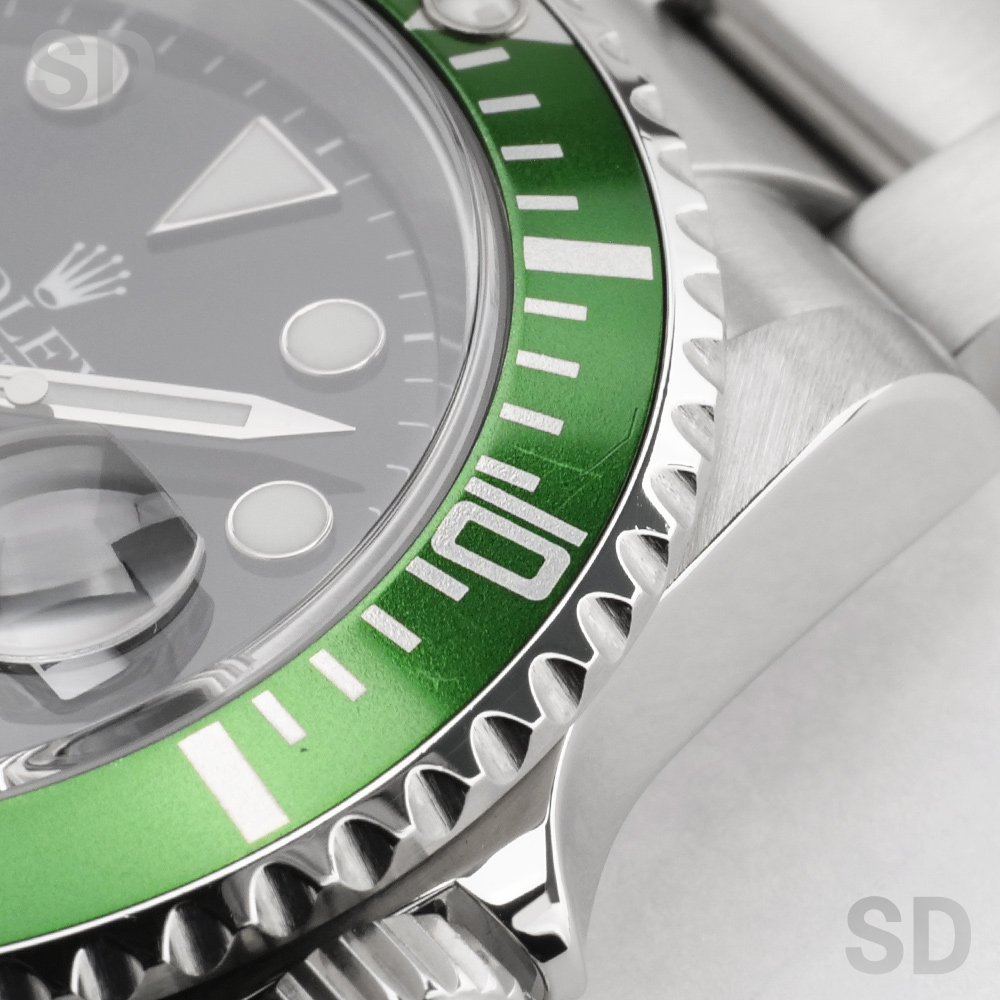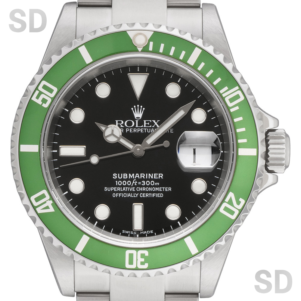こちらのグリーンベゼルモデルは、サブマリーナー誕生50周年を記念して発表された特別仕様の個体として高い人気を誇り、市場でも引き続き注目されている一本でございます。
