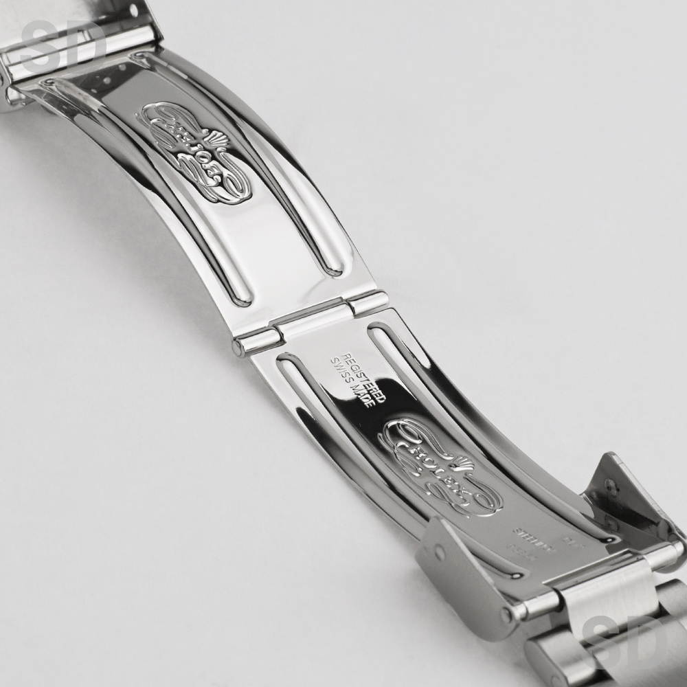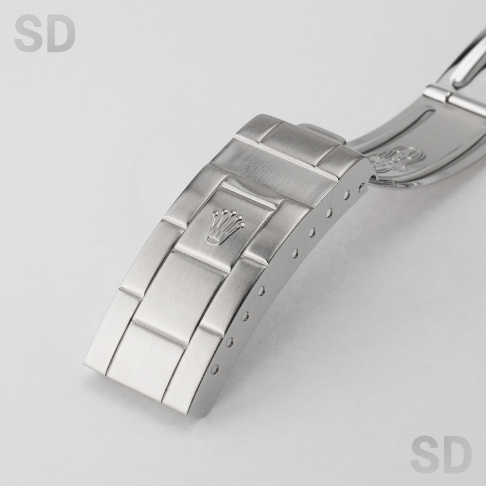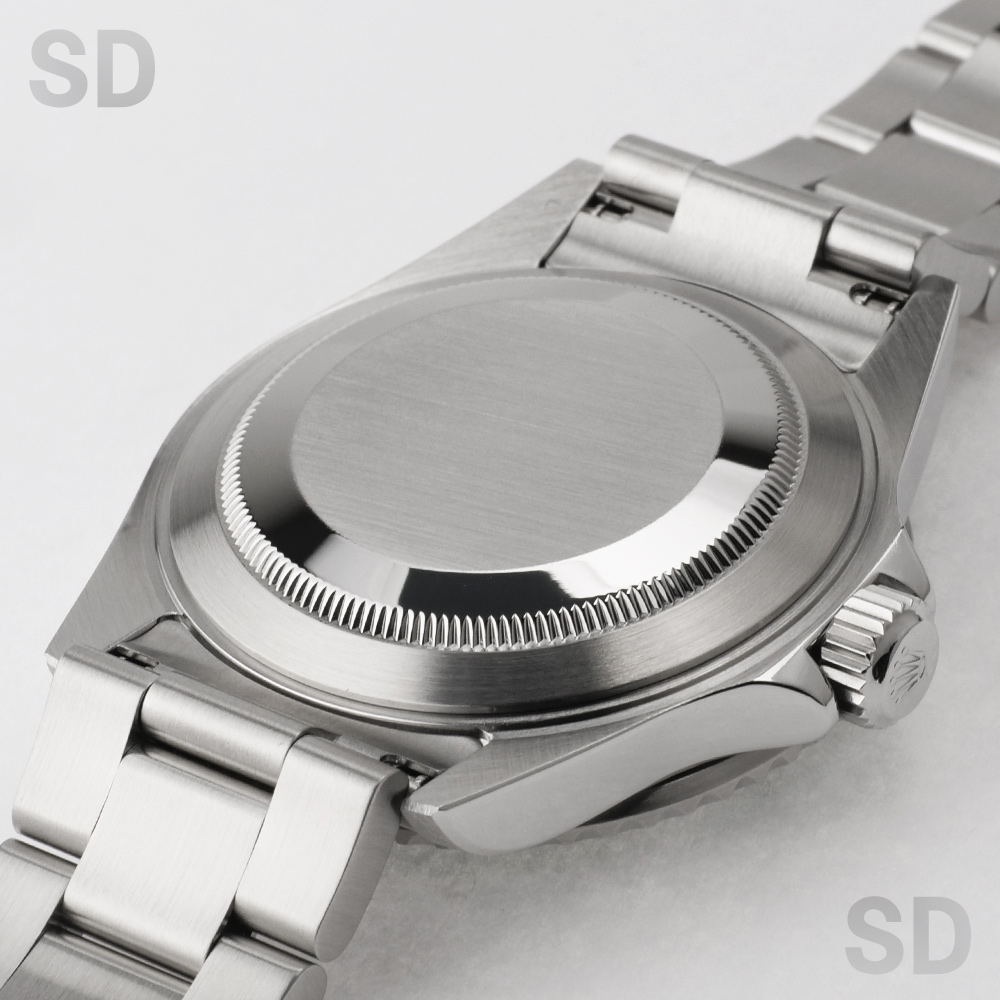 外装につきましては、提携の修理工房にて研磨仕上げを施しておりますため、取りきれなかった擦り傷小傷がベゼル外周、ケースサイド、裏ブタ周辺に残存しておりますものの、いずれも気になるほどのものではなく、大変良好な外観コンディションを保っております。ブレスレットについても、金属疲労による顕著な伸びはほとんど見受けられず、可動部の状態も良好で、装着感においても問題のないクオリティを維持しております。