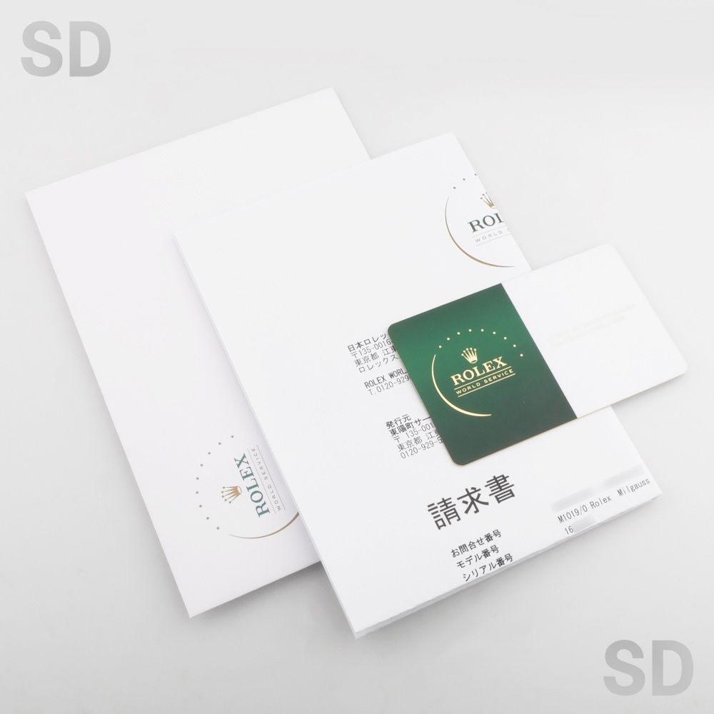 付属品につきましては、メンテナンス実施時に日本ロレックスより発行された、NFC機能を搭載した最新仕様のロレックスサービスカードが付属しており、保証期間は2027年12月まで有効でございます。