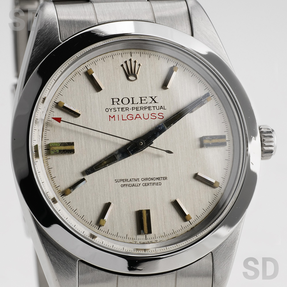 本個体は、初期特有の「0.2秒ピッチダイアル」を備えた希少性の高い仕様となっており、ヴィンテージミルガウスの中でも特に評価の高い一本でございます。