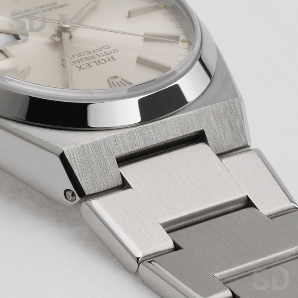 独特の真っ平なフォルムが人気のオイスタークオーツ。製造されていたのは1977年から2000年代前半までと長期的に公式カタログにも掲載されていましたが、当時から認知度は低く、非常にマニア向けモデルとされておりました。近年ではそのデザインからラグジュアリースポーツに近しいとして海外からの評価も高く、また、オイスタークオーツのデザインを継承したランドドゥエラーが2025年に新作モデルとして登場したことで、再注目されております。クオーツ時計ならではの針の刻みを是非ご体感ください。