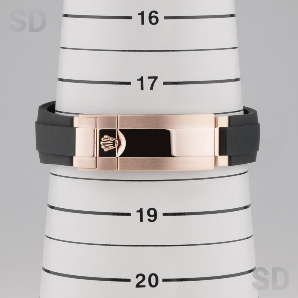 旧型モデル Ref.116655 との主な相違点といたしましては、搭載ムーブメントがキャリバー3235へと変更され、ダイヤル6時位置のSWISS MADE表記中央にクラウンマークが追加されており、クラスプ部分にはグライドロックエクステンションが採用されました。