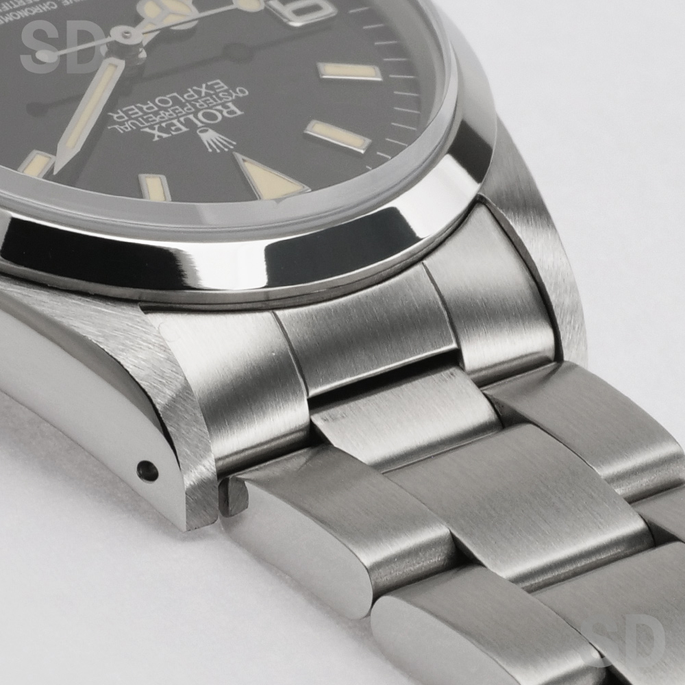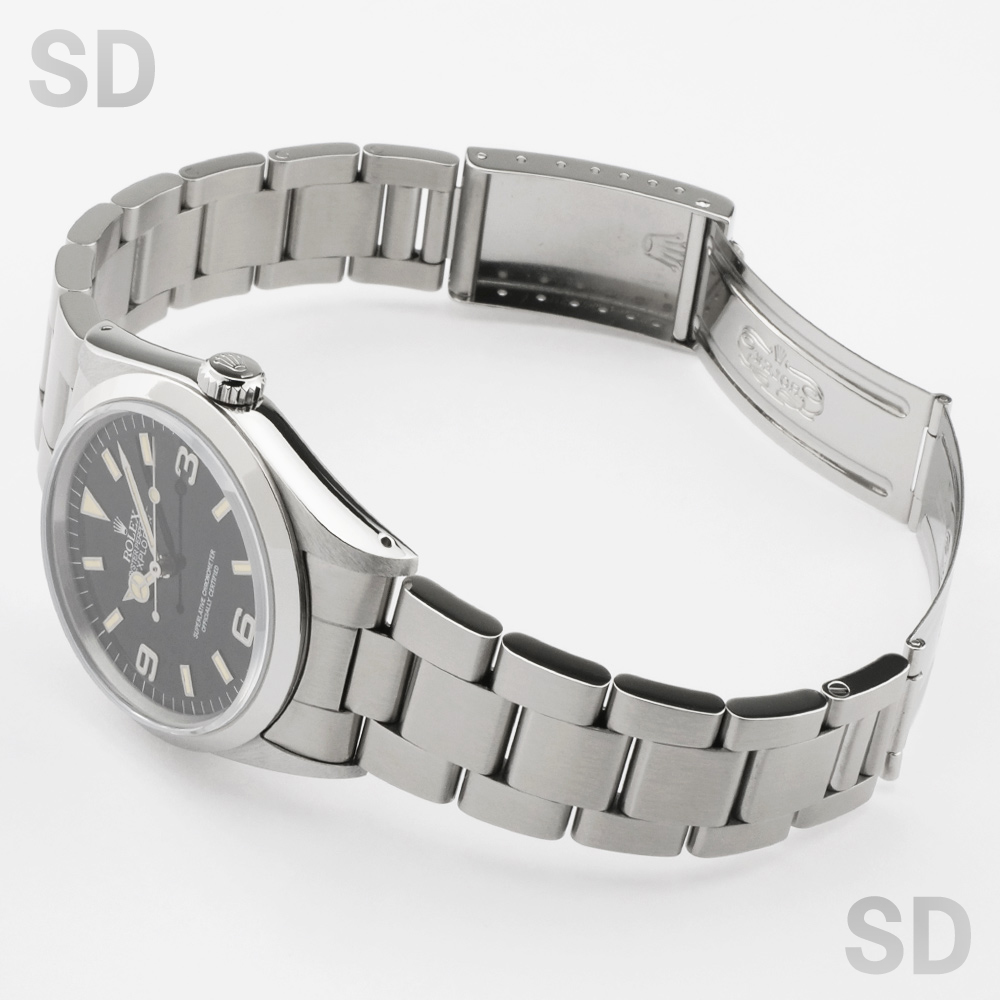 スポーツモデルの中でも使い勝手のいいシンプルな3針モデル。極めて王道とされるこちらのモデルは、腕の馴染みが良いサイズ感と旧型モデル特有のブレスレットの軽さで、装着時の圧迫感もなく普段使いには最高の1本。シンプルなデザインとはいえ、はっきりと時刻を読み取ることが出来るとても実用向きなモデルですので、スタイルを選ばずラフにご使用出来き、ロレックス入門としてもオススメ。