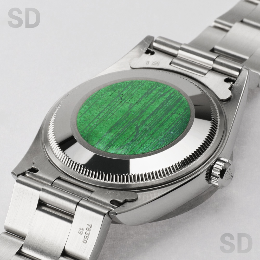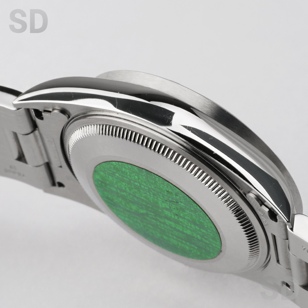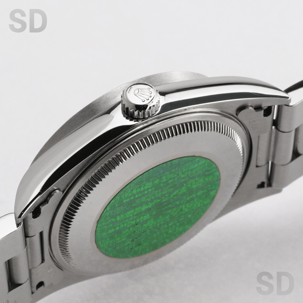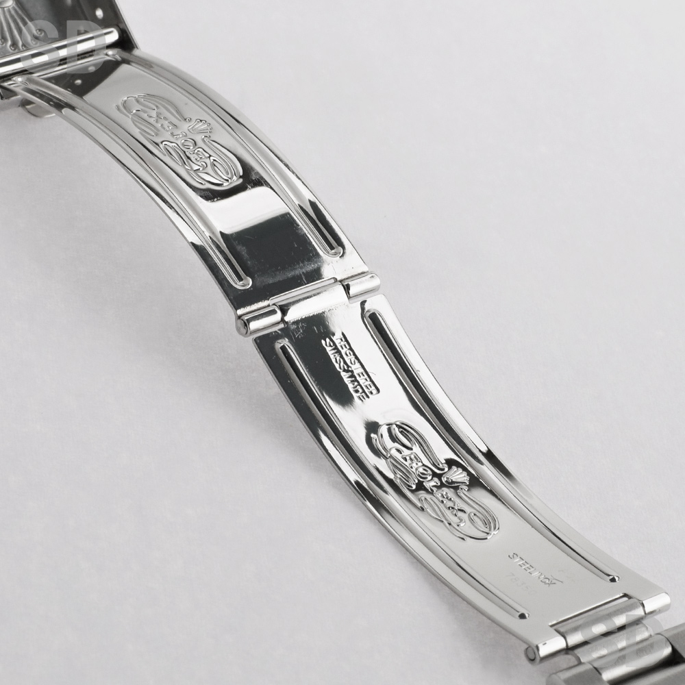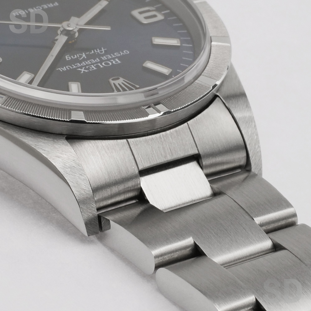 当時はペットネームとして愛されていたエアキングシリーズ。非クロノメーターでありながら、他の日付なしモデルと同様のムーブメントCal.3130を搭載しており安定感のある精度を保ちます。シンプルなデザインですので、スタイルを選ばずラフにご使用出来る1本。また、こちらの商品はエンジンターンドベゼルを装備しておりますので、ドレスウォッチとはいえスポーティなデザインとして人気のモデルです。