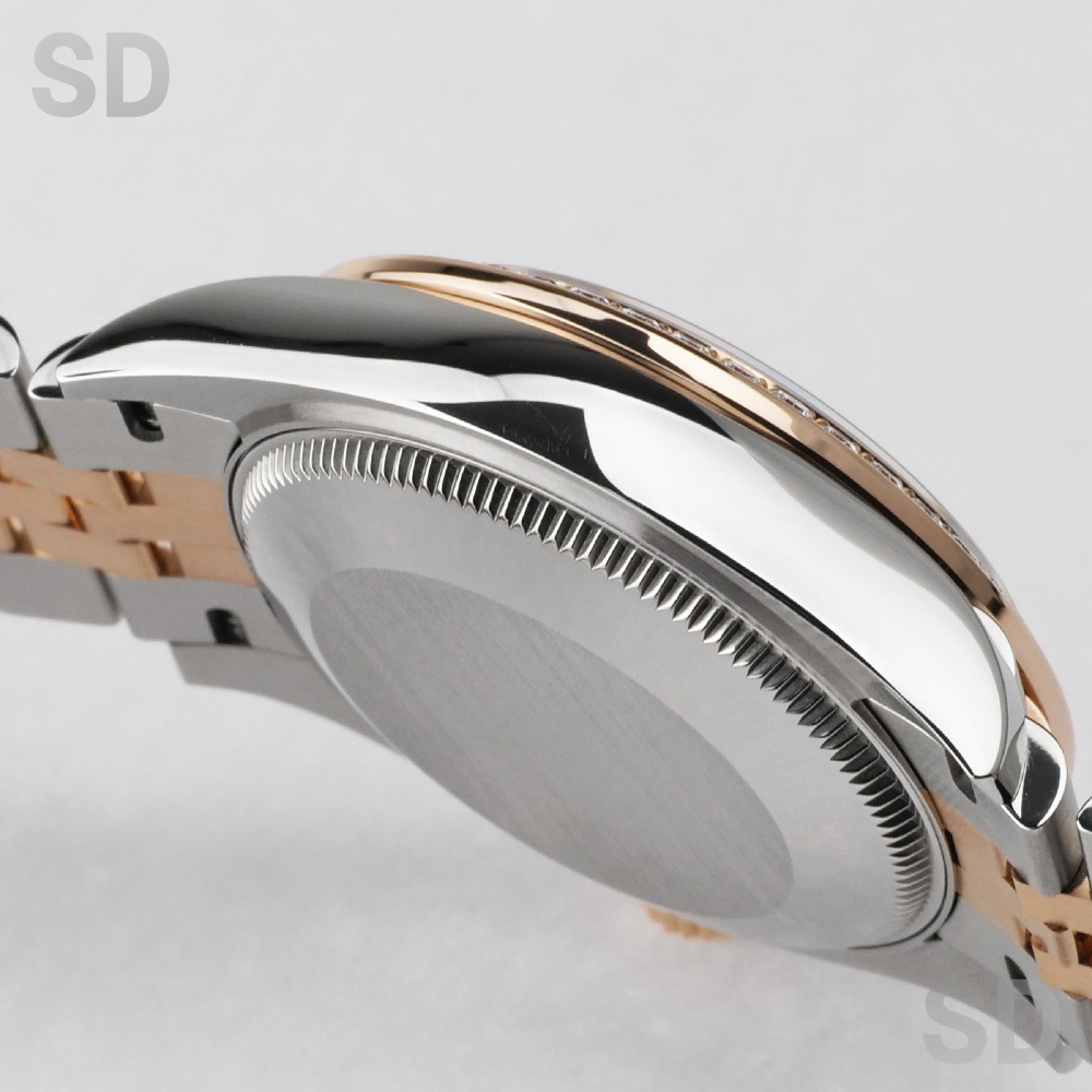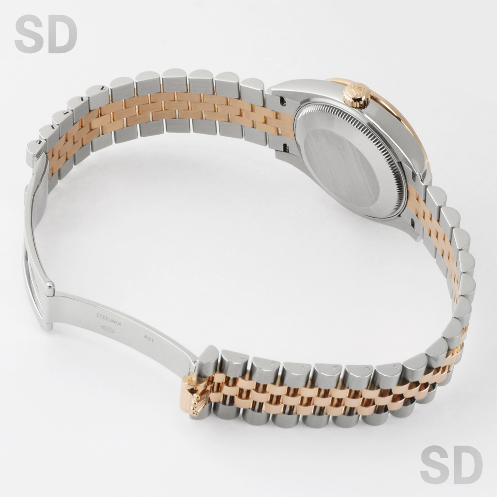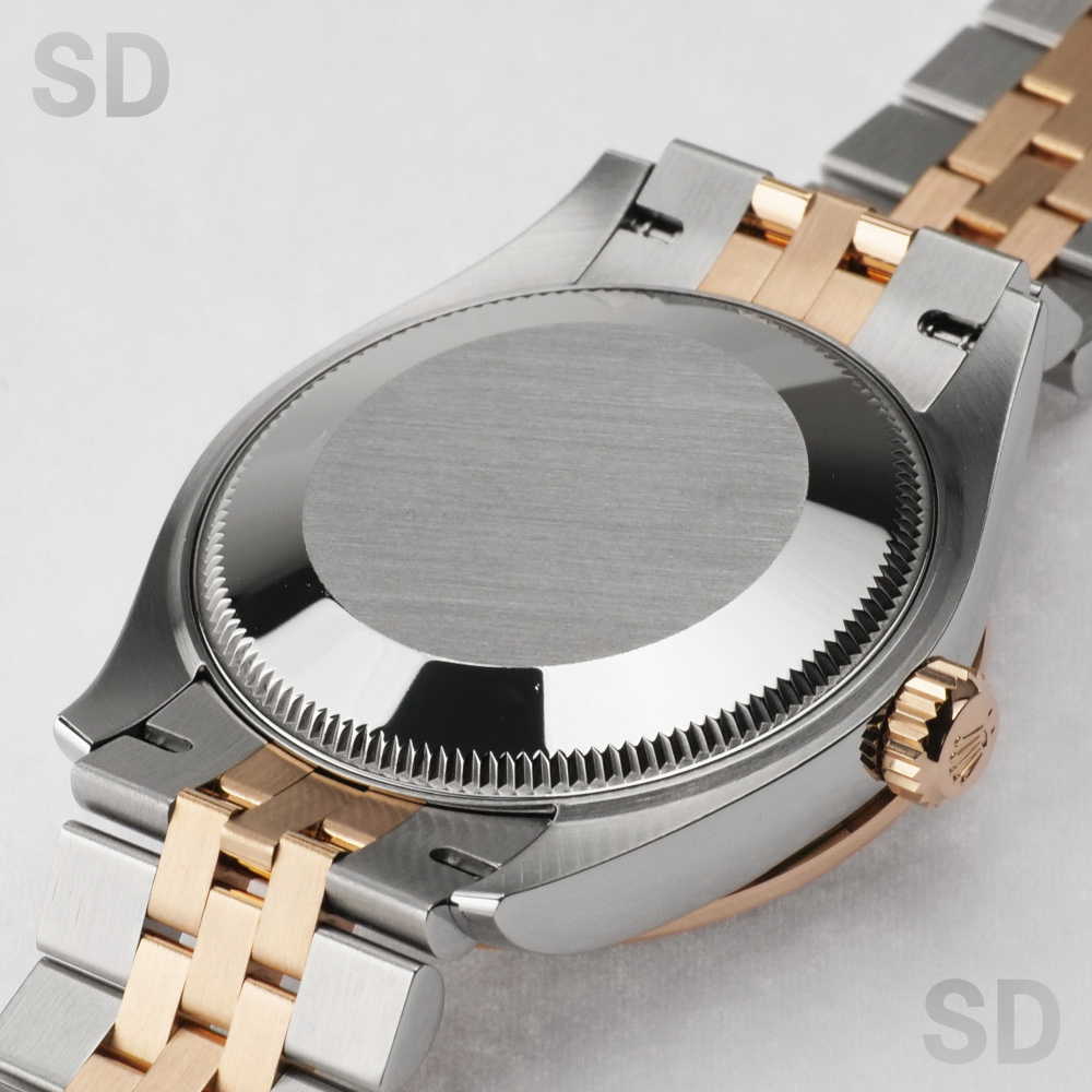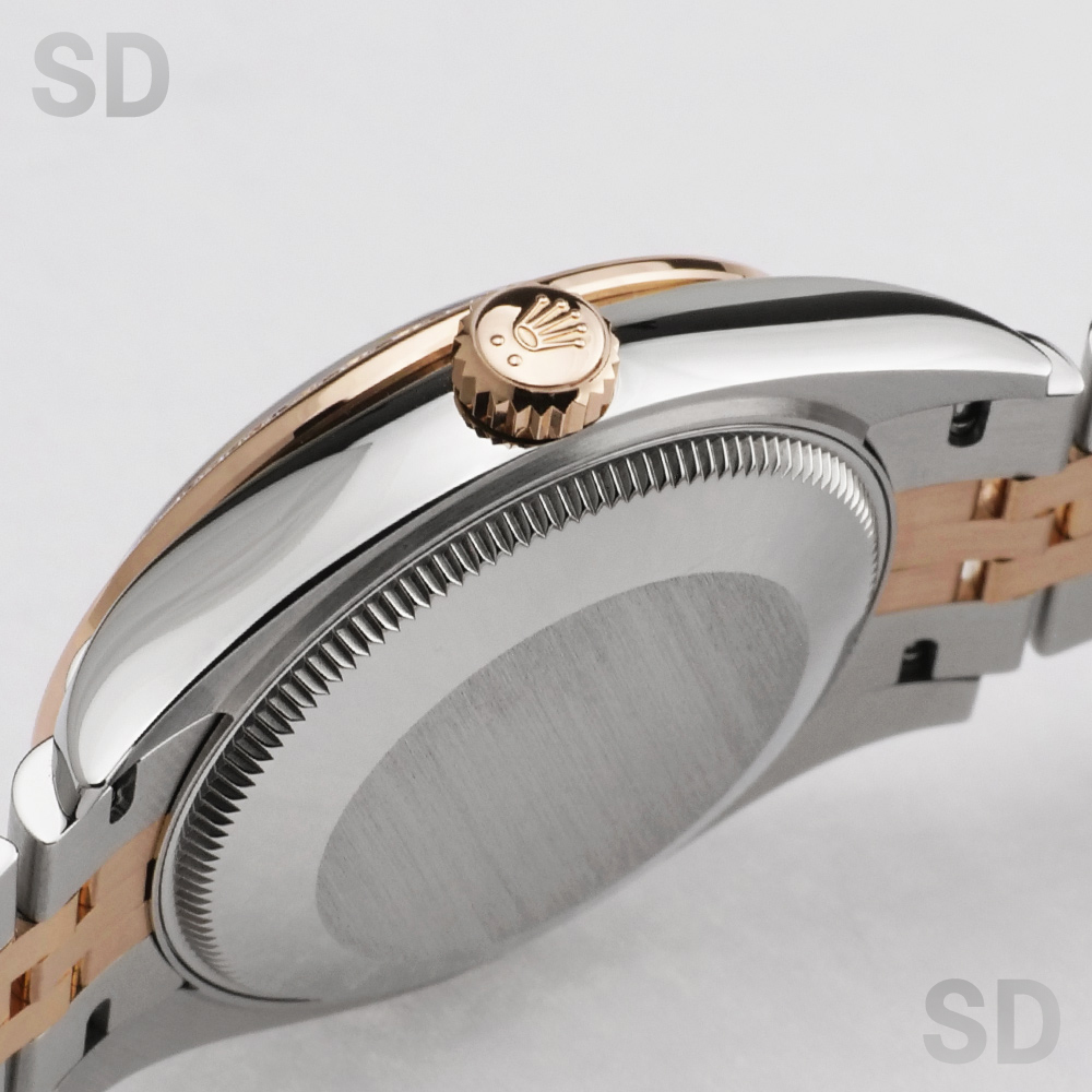 こちらのモデルは最新鋭ムーブメントCal.2236を搭載した現行モデル。女性でも少し大きめのサイズ感を希望される方にオススメの31mmケースのデイトジャストです。ダイヤモンドがセットされたベゼルにジュビリーブレスレットを装備し、エバーローズゴールドと相性抜群のチョコレートカラーの文字盤には6時位置にダイヤモンドで模られたローマ数字がとても煌びやかで上品な腕時計。腕元を華やかに彩るジュエリーとしても最高の1本です。
