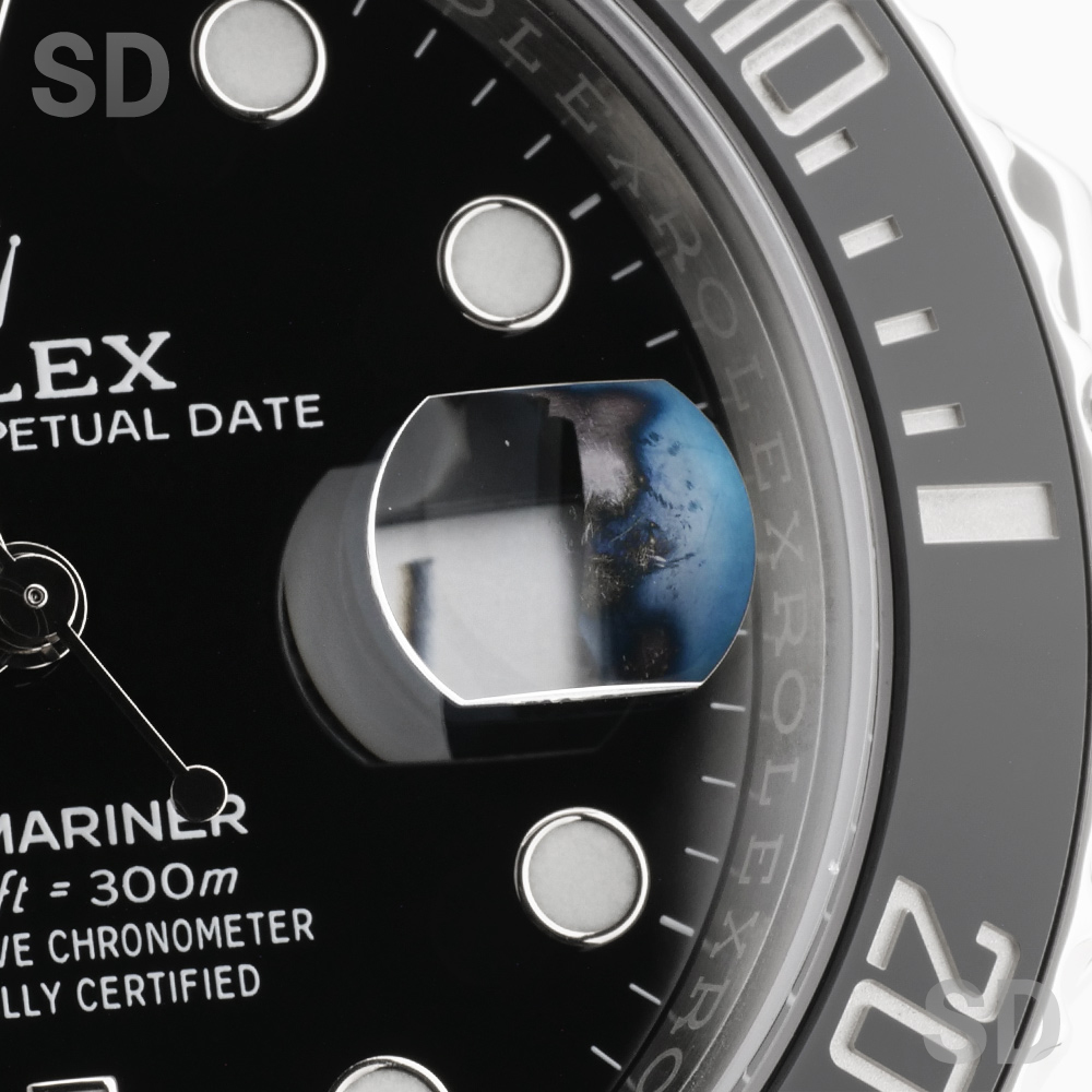 状態です。風防につきましては、角部分に爪先がわずかに引っかかる程度の極めて小さな欠けが確認されており、サイクロップレンズには使用に伴う擦り傷が確認できます。
