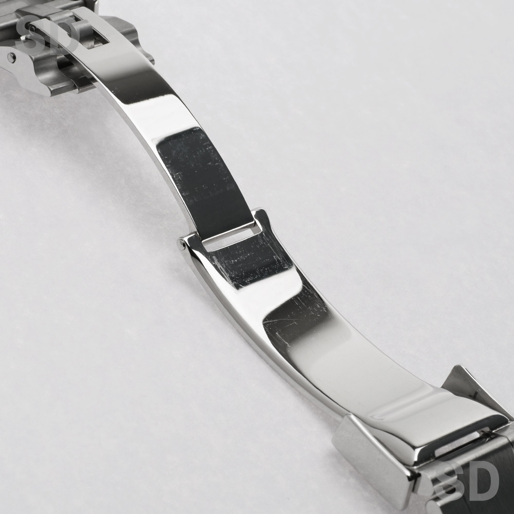 状態です。外装につきましては、当店において研磨処理を施していないノンポリッシュの状態でございます。そのためフラッシュフィット、裏ブタ、クラスプ裏周辺に、経年使用に伴う細かな小傷が見受けられます。しかしながら、いずれも通常使用の範囲内のものであり、外観を大きく損なうような打痕や深い傷など、特筆すべきダメージは確認されておりません。総合的に判断して、良好なコンディションを保っている個体でございます。