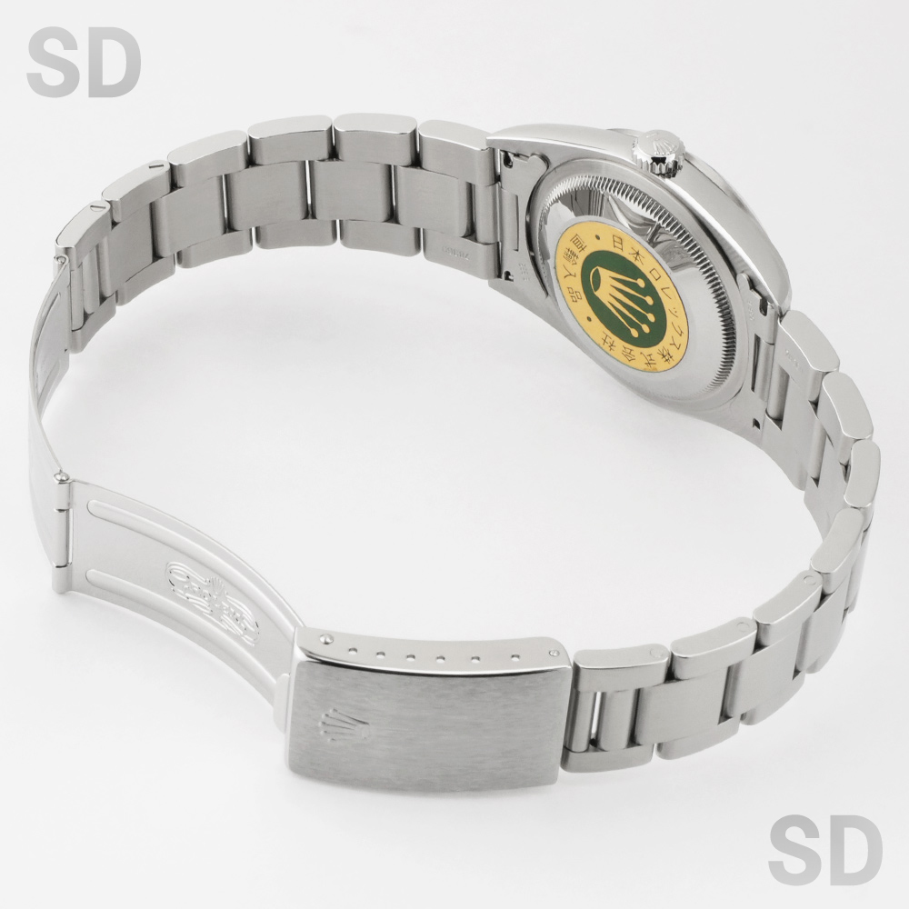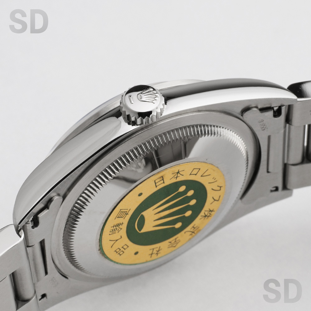 その他外装につきましては、当店において研磨処理を施していないノンポリッシュの状態でございます。そのため全体的に細かな小傷が見受けられますが、いずれも数回使用の範囲内のものであり、外観を大きく損なうような打痕や深い傷など、特筆すべき大きなダメージは確認されておりません。裏蓋にはメーカーシールも残っており、ベゼルやラグのエッジの立ち具合からも、非常に保存状態の良いミントコンディションと評価できる個体です。