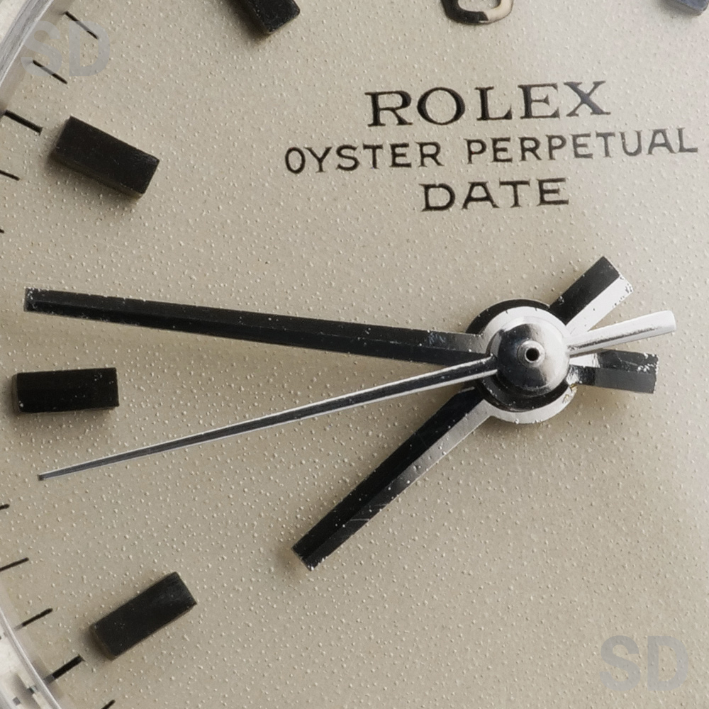文字盤は全体的にヤケており、少々色褪せたシルバーカラーへと変色しております。また、表面はプツプツとした気泡のような経年劣化が見受けられますが、小振りサイズのモデルですので、劣化はルーペを使用して初めて判別できる程度です。