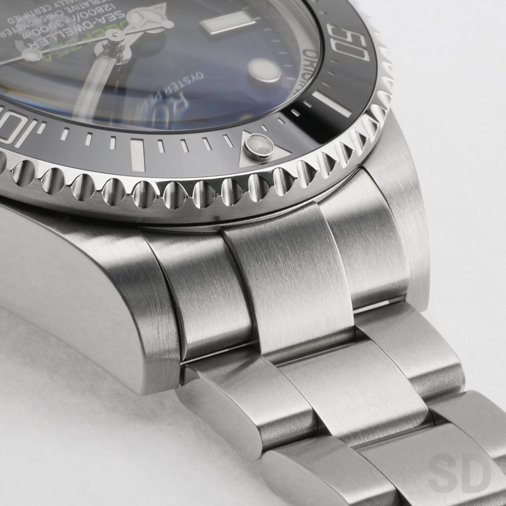 深海を表すようなグラデーションがかったDブルーダイヤルが目を惹く1本です。
