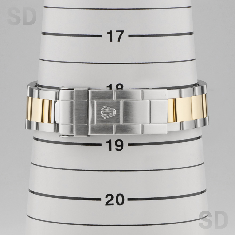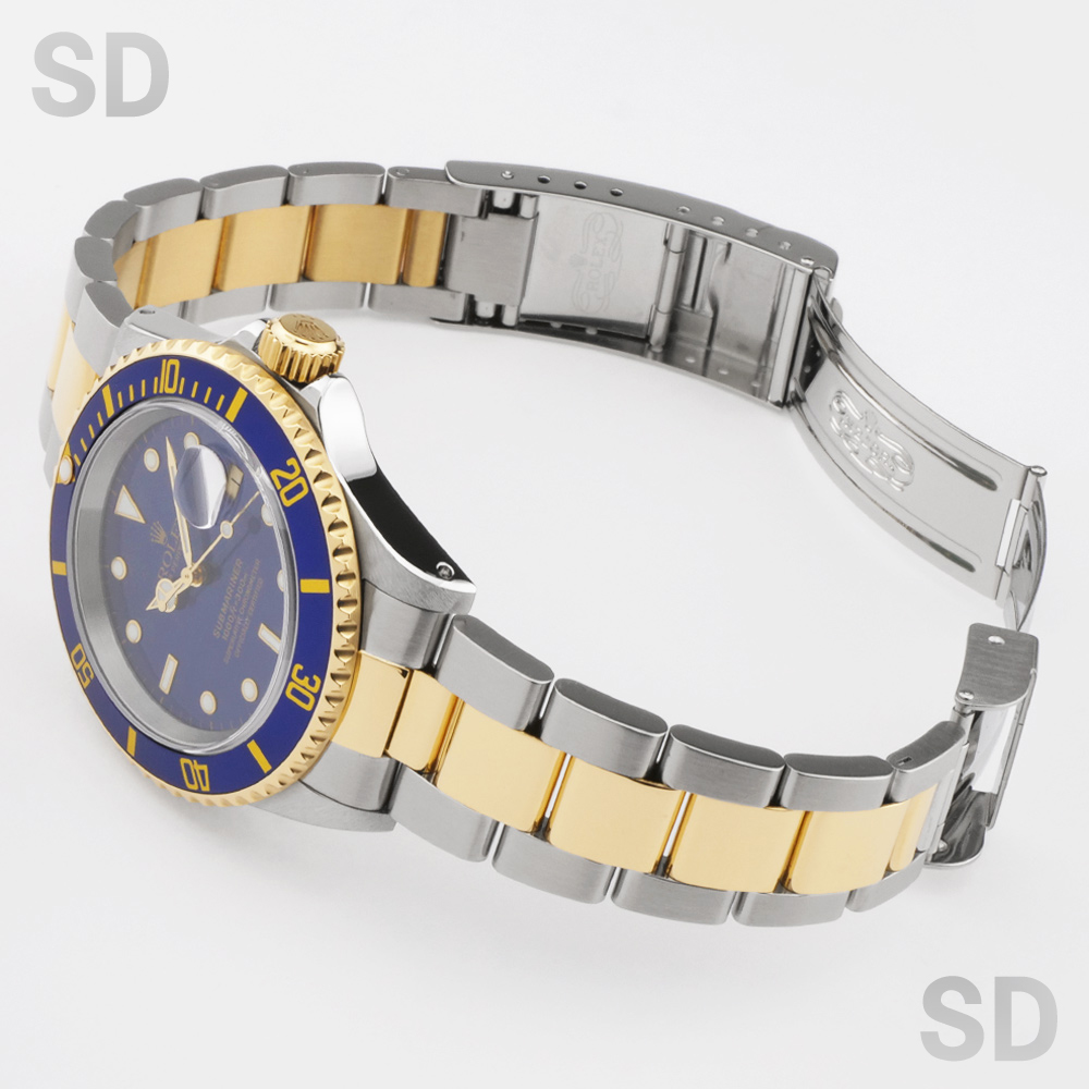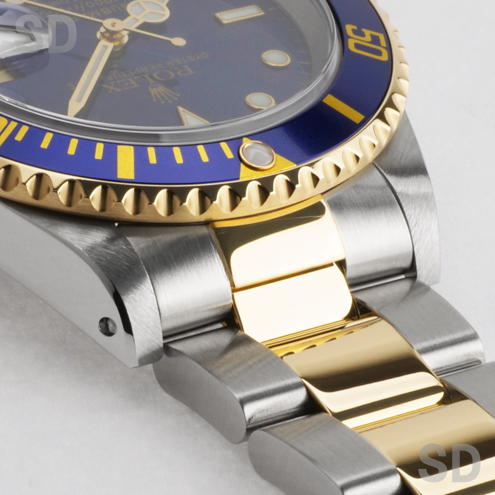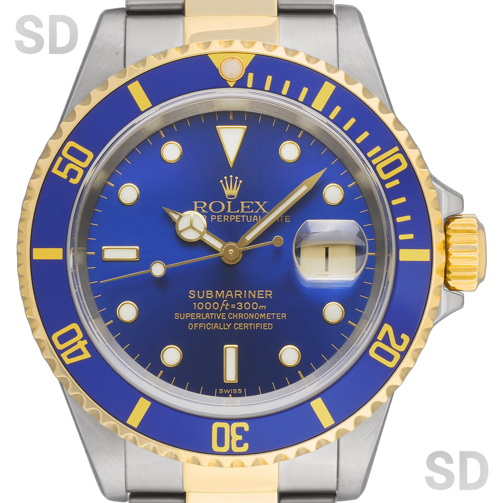 現在は生産が終了している本モデルは、ステンレススチールと18Kイエローゴールドを組み合わせたロレゾール仕様のコンビモデルです。ダイアルやベゼルには通称「青サブ」と呼ばれるブルーカラーを採用しており、スポーツモデルとしては比較的珍しい配色であることから、高い人気を獲得しております。