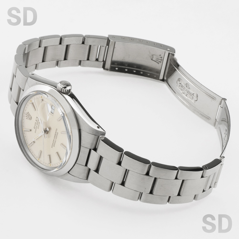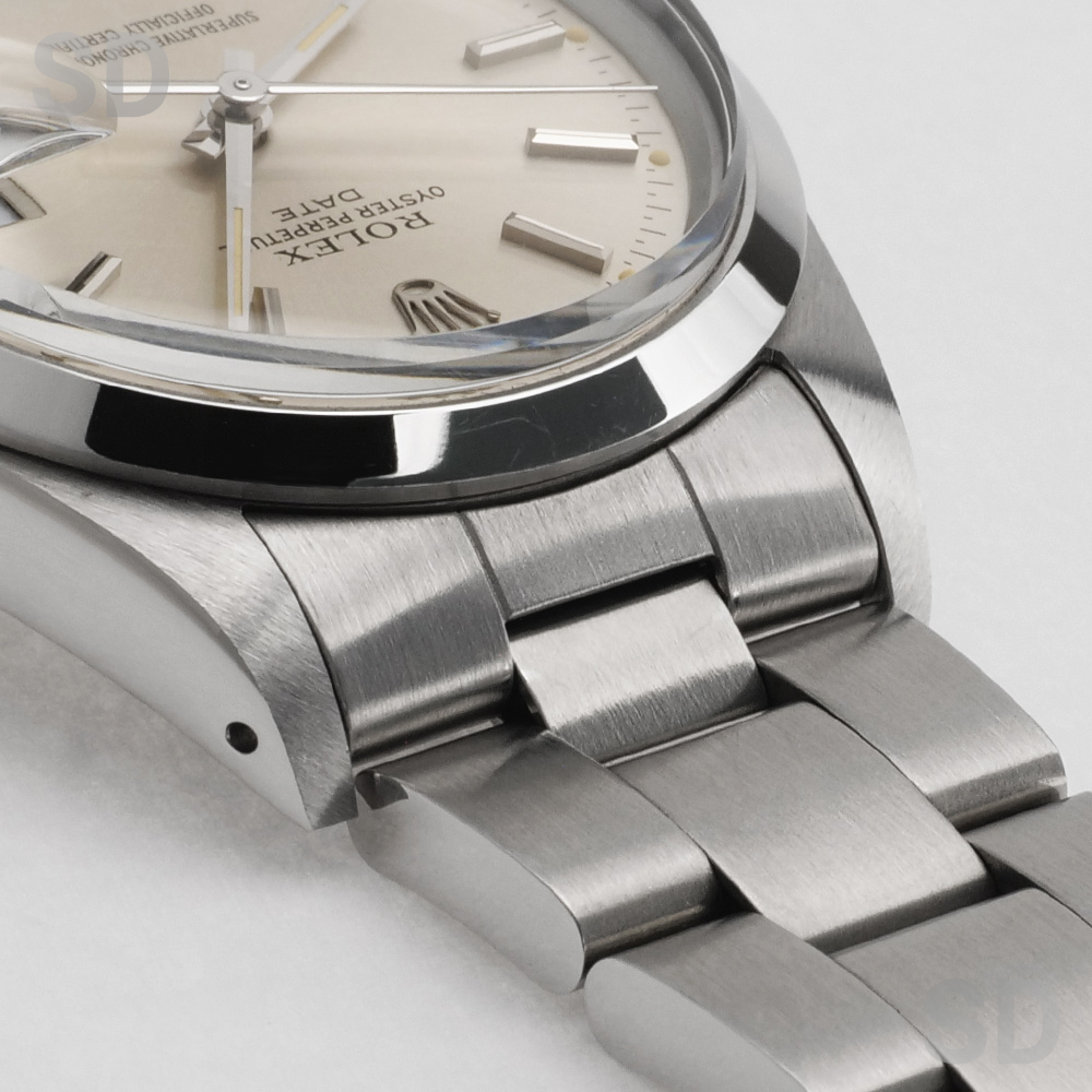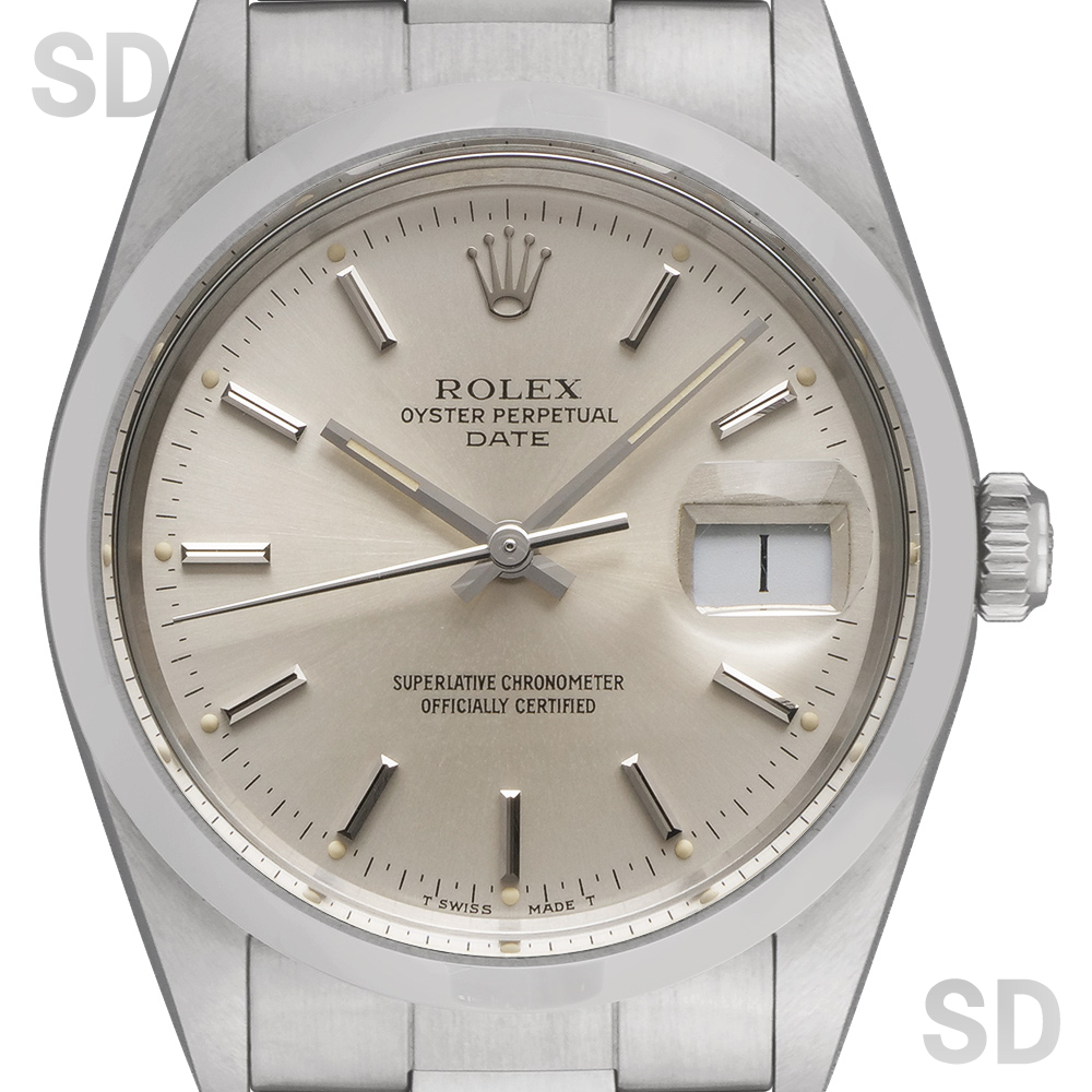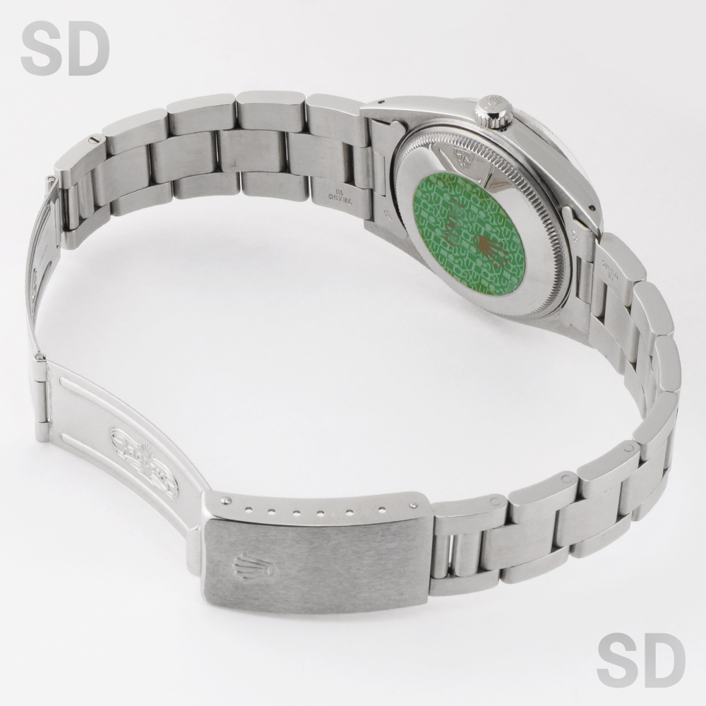 エアキングの日付ありバージョンであり、デイトジャストのケースが小さいバージョンとされるパーペチュアルデイト。こちらは1980年代に製造されたパーペチュアルデイトシリーズであり、このシリーズよりハイビートとなるCal.3035を搭載。日付けの早送りも可能となりとても実用的となりました。後継機モデルとなる15200ととても類似するデザインではありますが、こちらのモデルではまだ強化プラスチック風防を装備しております。現代的なデザインでありながらもプラスチック風防独特の温かみある雰囲気も相まってヴィンテージウォッチとしての風格が漂う素敵な1本となっております。
