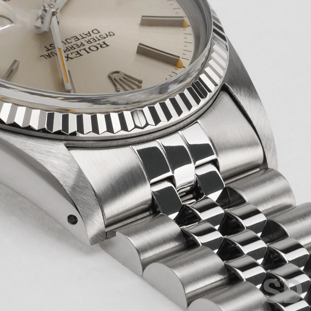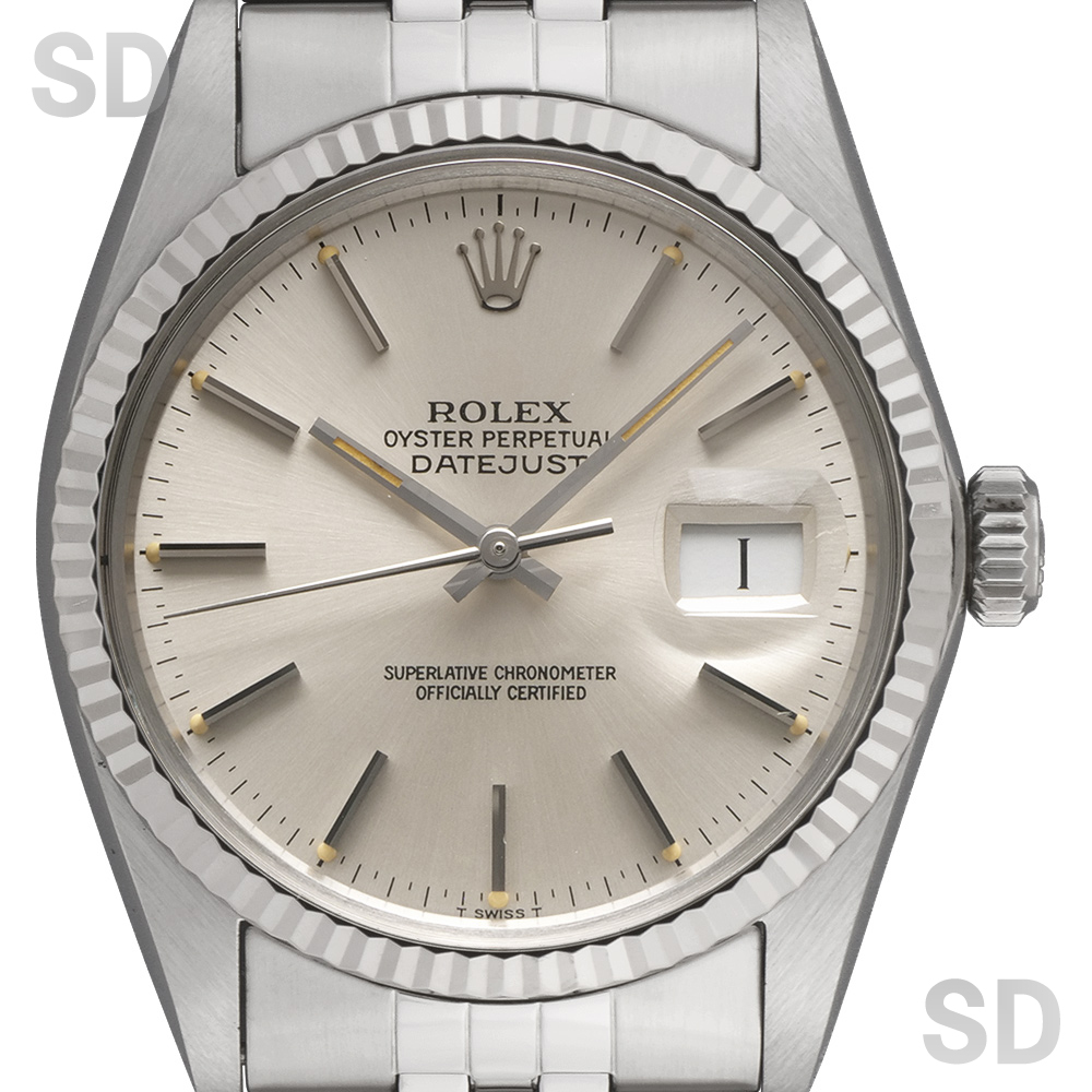 1970年代後半から1980年代後半に製造されたデイトジャストシリーズとなる16014。このシリーズよりデイトジャストはハイビートとなるCal.3035を搭載。日付けの早送りも可能となりとても実用的となりました。後継機モデルとなるRef.16234ととても類似するデザインではありますが、こちらのモデルではまだ強化プラスチック風防を装備しており、プラスチック独特の温かみある雰囲気がヴィンテージウォッチとしての風格もしっかりと漂わせます。ヴィンテージ入門時計としてもオススメなモデルです。