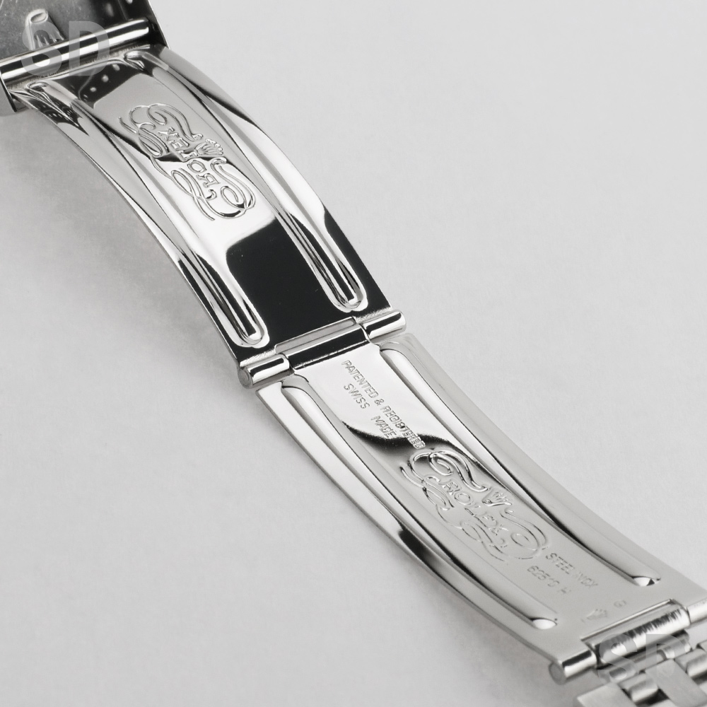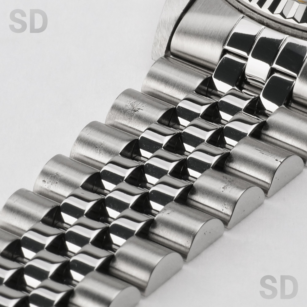 ブレスレットに伸びは感じませんが、6時側に外装仕上げでは除去しきれない傷・腐食が残りますので商品画像をよくご確認ください。