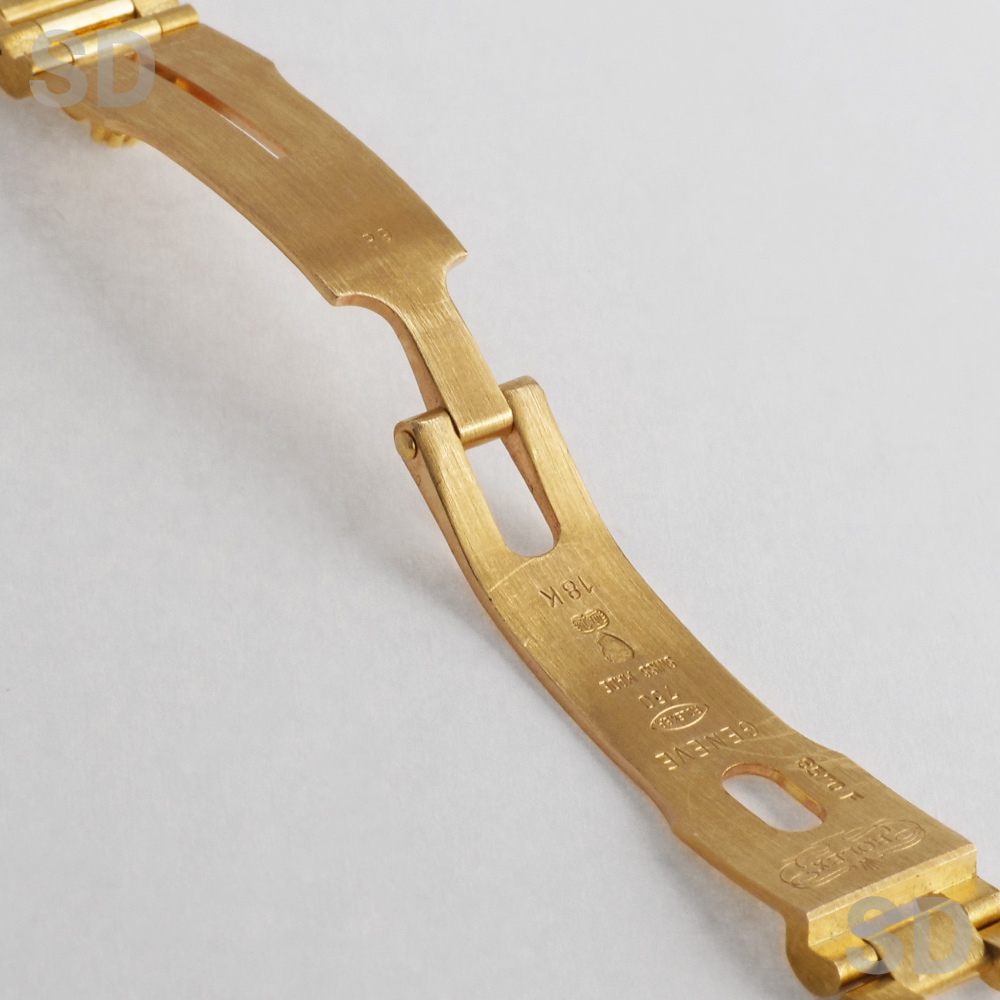状態です。今回のメンテナンスにおいては、外装はあえて研磨を行っておらず、そのため全体的に擦り傷や小傷、ゴールドの変色が点在して見受けられますが、目立つ打痕や深い傷など、特筆すべきダメージは確認されません。また、ベゼルやラグ、ブレスレットに至るまでエッジの立ちがしっかりと保たれており、製造年を考慮すると、全体として非常に良好なコンディションを維持しております。