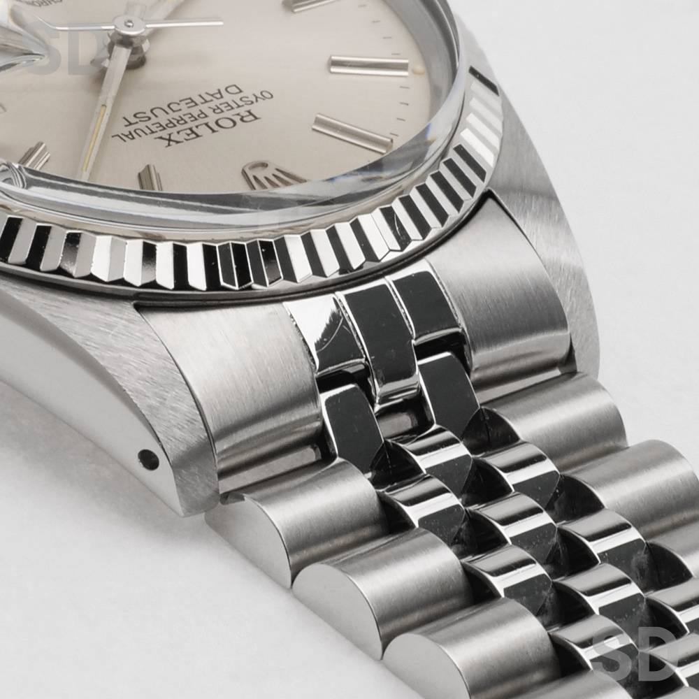 1970年代後半から1980年代後半に製造されたデイトジャストシリーズとなる16014。このシリーズよりデイトジャストはハイビートとなるCal.3035を搭載。日付けの早送りも可能となりとても実用的となりました。後継機モデルとなる16234ととても類似するデザインではありますが、こちらのモデルではまだ強化プラスチック風防を装備しており、プラスチック独特の温かみある雰囲気がヴィンテージウォッチとしての風格をしっかりと漂わせます。