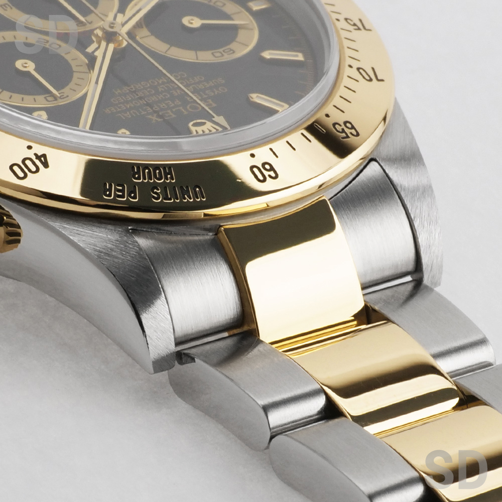 ベゼルには微細な小傷が残りますが、大きく目立つ傷や打痕はなく、タキメーターの刻印もしっかりと残っており墨抜けもありません。