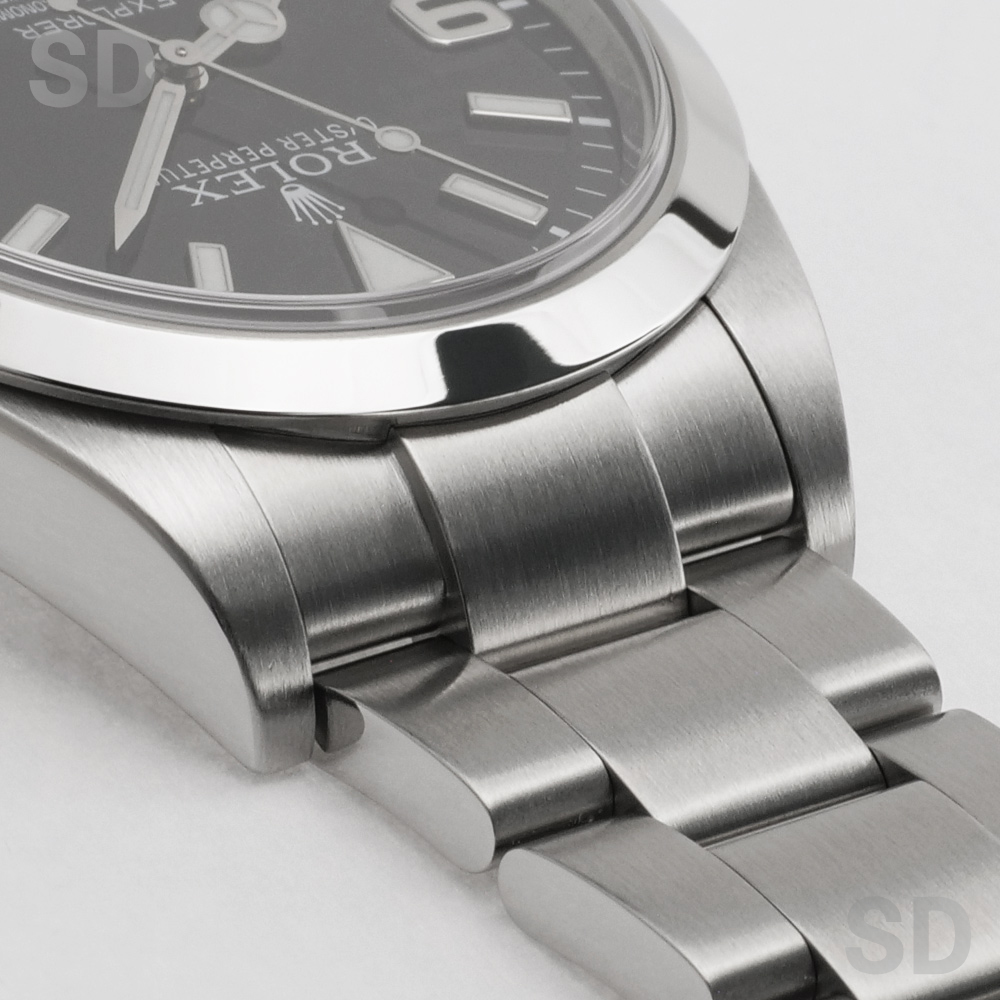 現在は生産が終了している本個体は、インデックスに立体感のある3・6・9メタル仕様を採用したダイアルを備え、さらにクラスプには前期型ならではの特徴である梨地仕上げタイプが装着されたモデルとなっております。後年の仕様とは異なるディテールを有することから、現行モデルとは一線を画す魅力を備えており、エクスプローラーIの系譜の中でも高い評価を受けている一本です。