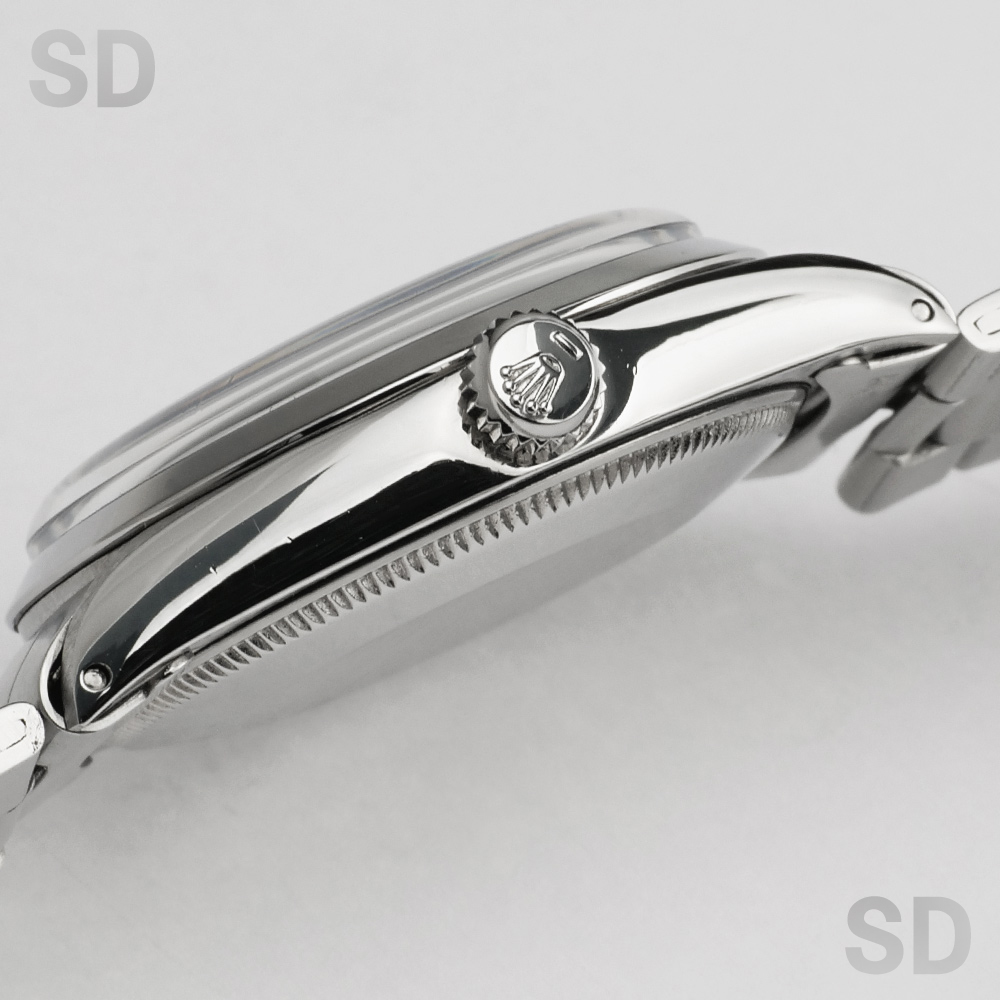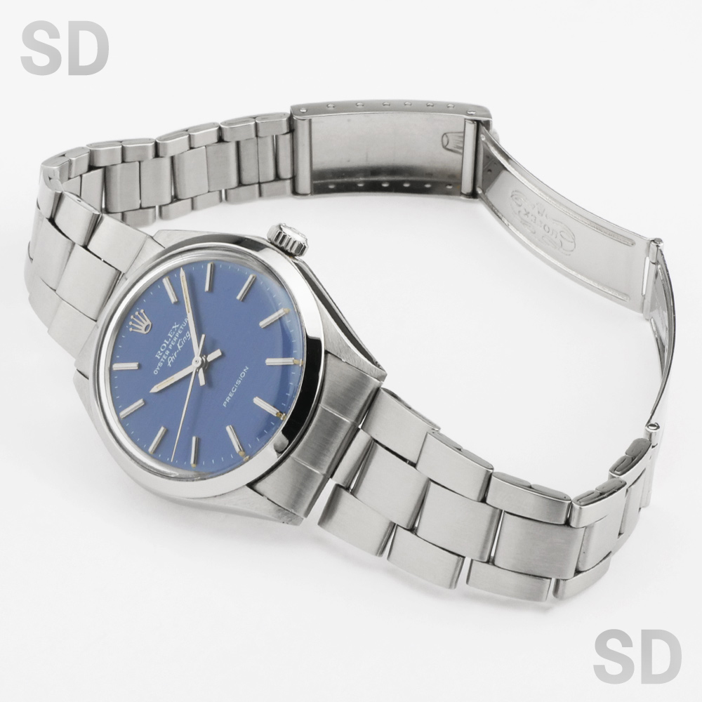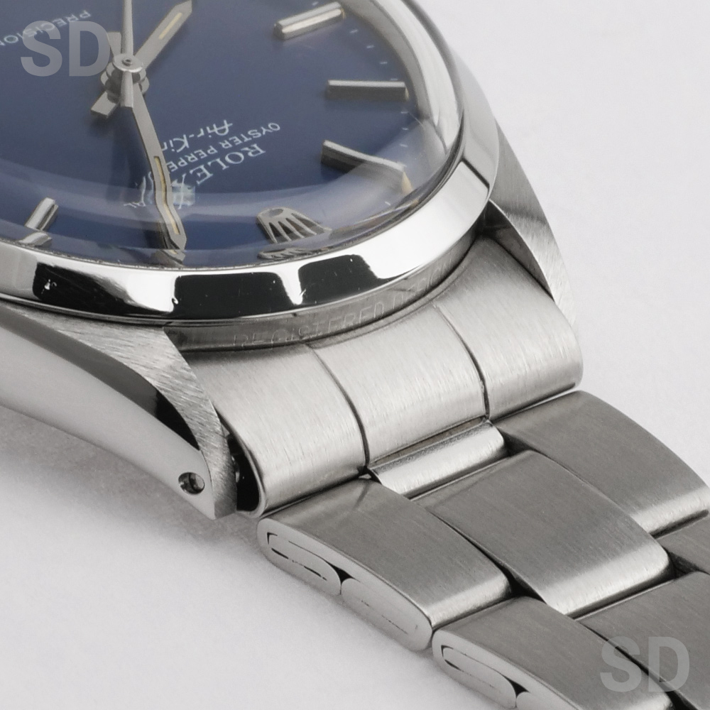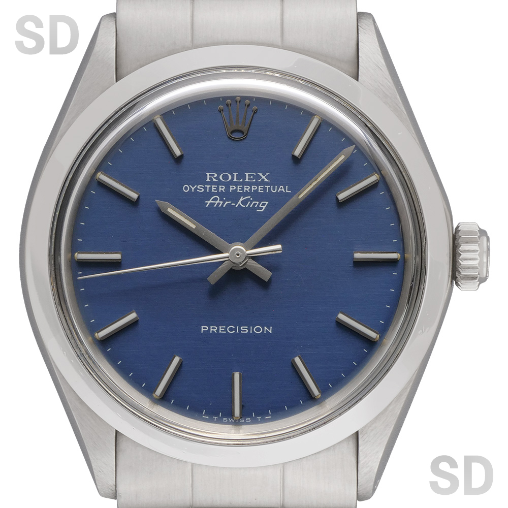1950年代から1989年頃まで長期的に製造されていた、エアキング。ペットネームとして世界中から愛されたモデルであり、当時の経営戦略を図るロレックスを支えたモデルの一つとされています。34mmという今でこそ小振りのサイズ感ではありますが、その分普段使いするには邪魔にならず、使い勝手は抜群です。当時のブルー文字盤は少しマット調で落ち着きがあります。年代物とはいえ、末永くお使い頂く上でもシンプルで飽きのこないモデルですのでヴィンテージ入門時計としてもオススメです。