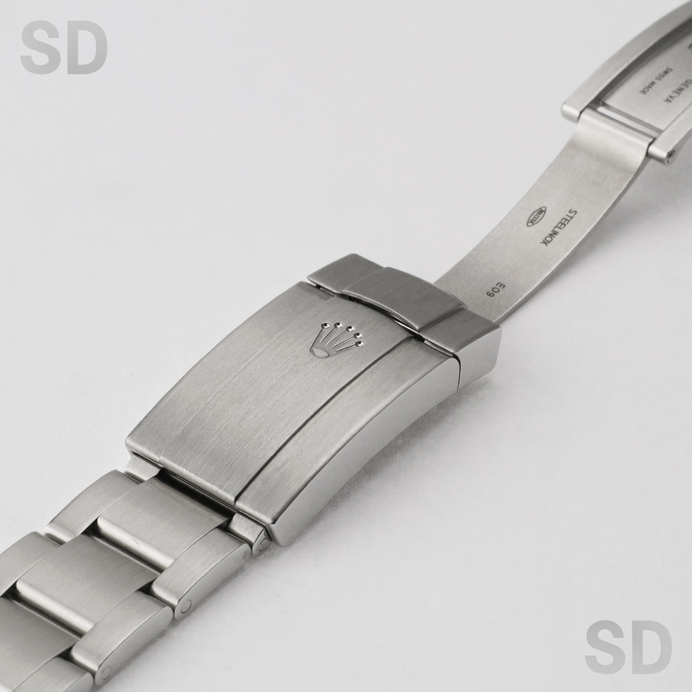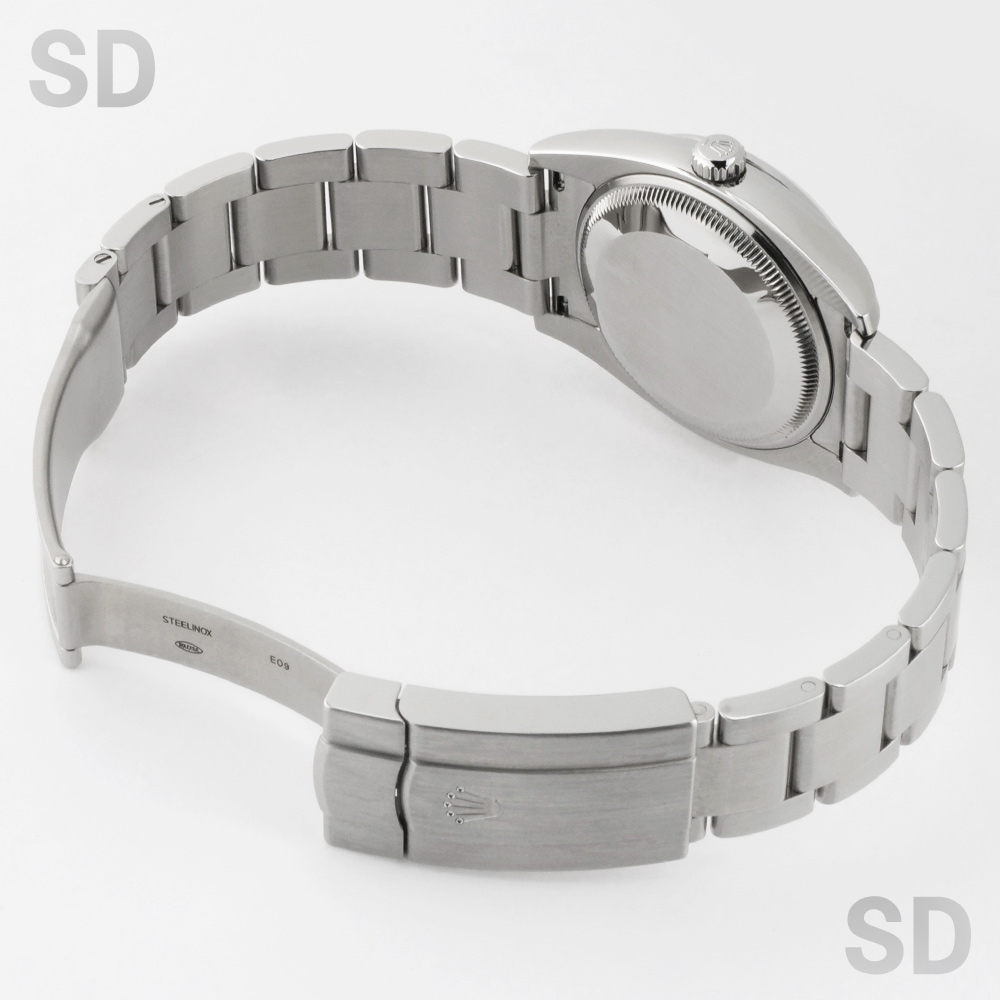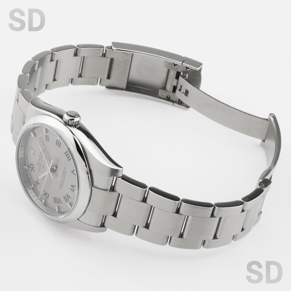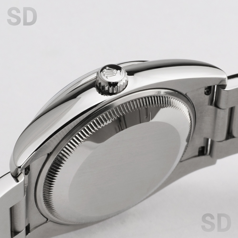 2014年頃にパーペチュアル34とモデル名が変わるまでペットネームとして末永く愛されていたエアキングシリーズ。他の日付なしモデルと同様のムーブメントCal.3130を搭載しており安定感のある精度を保ちます。こちらにセットされている文字盤は、ブラックペイントされたローマ数字のインデックスが印象的なグレープリントローマです。どこか渋みもありお洒落な1本で、比較的ラフにご使用出来るモデルです。