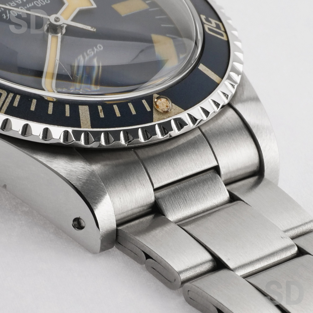 かつてロレックスのデュフュージョンブランドとして誕生したチュードル(現・チューダー)。独立する以前、チュードルとして愛されていた時代ではロレックスに類似するモデルが沢山普及されており、そのうちの一つがこちらのサブマリーナ―です。チューダーサブ、略して「チュ―サブ」としては3代目にあたるモデルであり、そのデザインはロレックスのサブマリーナーとそっくりではありますが、本家ロレックスでは未採用のステンレスモデルにブルーカラーを採用。リューズや裏ブタにはロレックス王冠が確認でき、独立する以前の当時の面影が残ります。