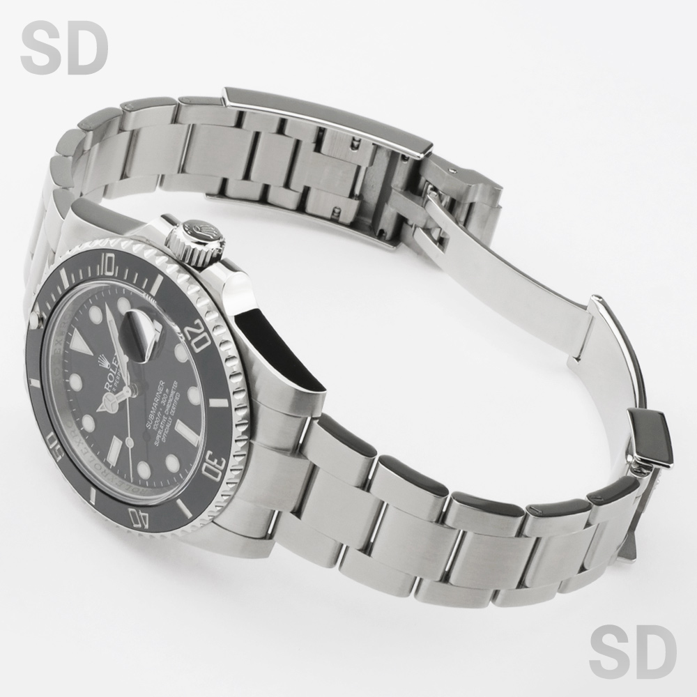 オイスターケース、回転ベゼル、ねじ込み式リューズを搭載して「潜水艦」という意味を持つサブマリーナー。2010年より2020年まで製造されていた116610LNは、従来通りダイバーズウォッチとしての安心の300m防水に日付表記を備えると共に、セラクロムベゼルを採用しラグやブレスレットも強化。バックル部分をスライドさせる事により2mm間隔で延長できるグライドロック・エクステンションシステムは些細な微調整も工具なしで簡単に行えるようになっています。また、旧式モデルとはいえロレックスの代表的な最高ムーブメントとされるCal.3135搭載。実用向きモデルとし人気が高くプロフェッショナルから一般ユーザーまで楽しめる高級スポーツウォッチ。このモデル1本で事足りる程の末永く愛用できるモデルです。