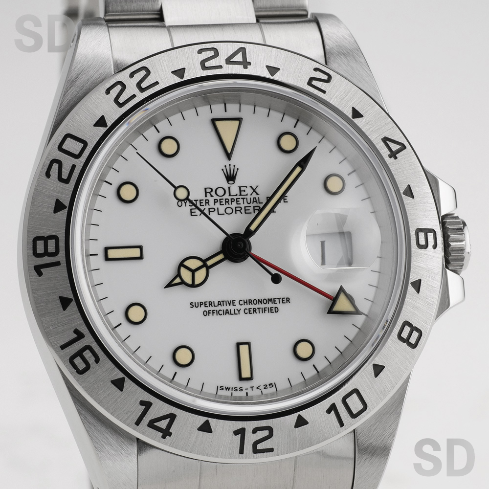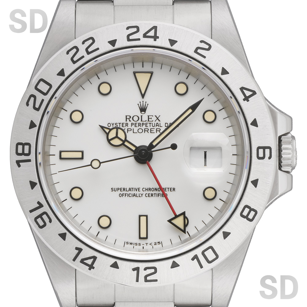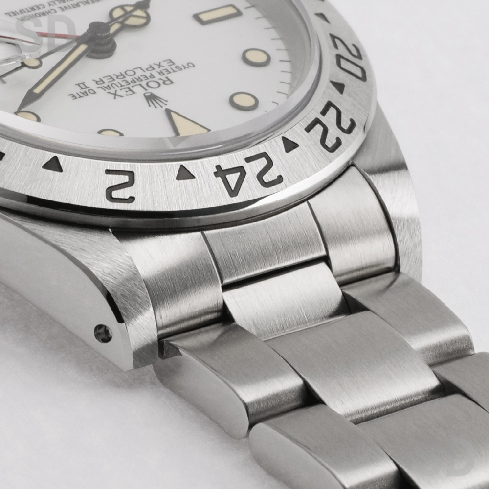 5桁型番のスポーツロレックス、とりわけトリチウム夜光やシングルロックを備えた“セミヴィンテージ”と呼ばれる個体は、近年ますます希少性が高まり、人気・評価ともに上昇しております。中でも、本品のようなダイアルの個体は市場に出回る機会が極めて少なく、大変貴重な存在です。ぜひこの機会に、特別なエクスプローラーIIをご覧いただき、その魅力を存分にご堪能くださいませ。