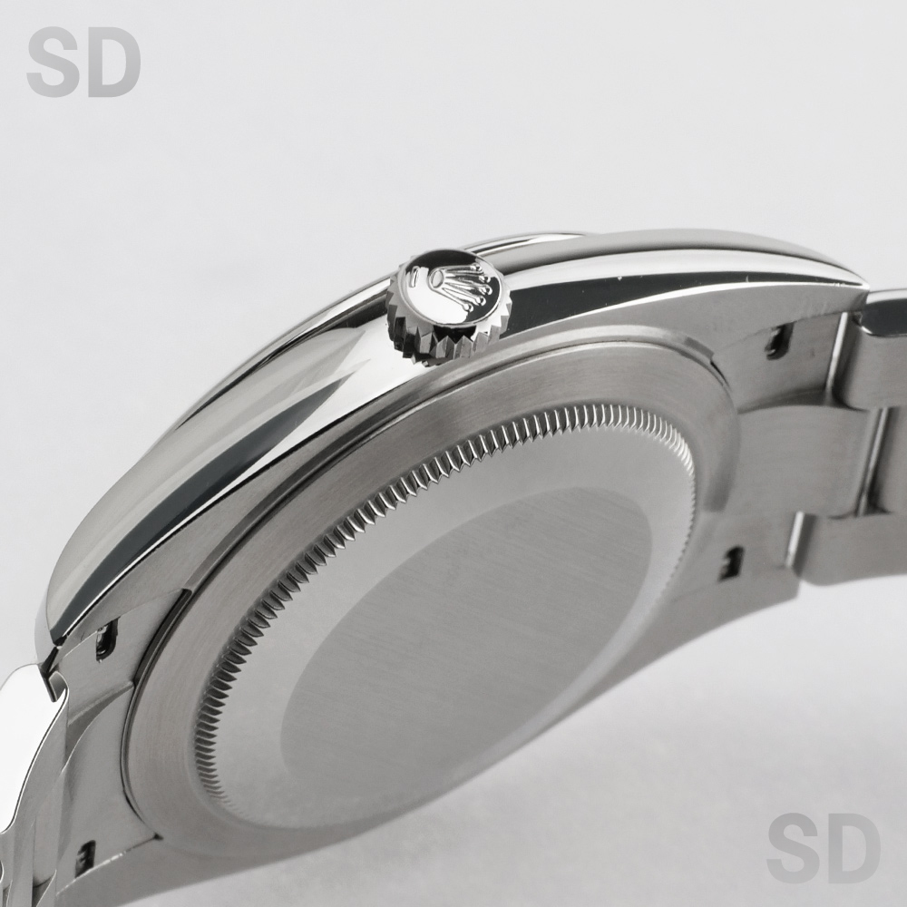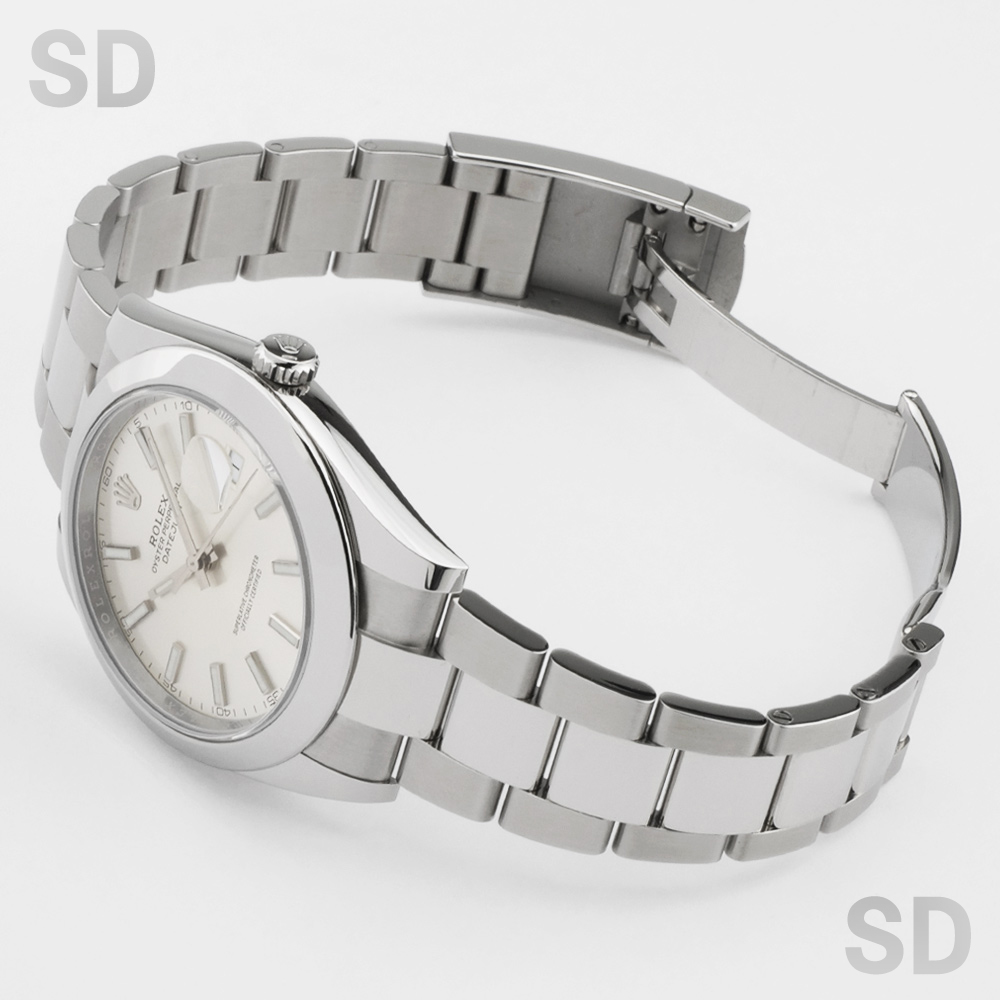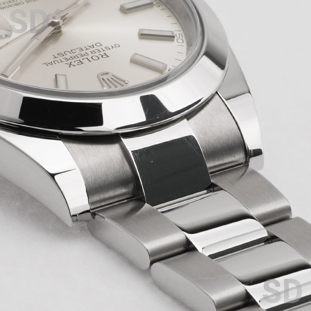 こちらのモデルは2017年に発表された現行モデル。36mmケースのデイトジャストとはサイズ違いとされていますが、36mmと異なりポリッシュされたスムースベゼルはフラットな形状をしております。生産が終了となったデイトジャストIIの後継機モデルとして製造されておりますが、ラグやケース形状の変更が加えられ長時間パワーリザーブの新ムーブメントCal.3235を搭載。腕時計の定番であるシルバー文字盤は、ドレスウォッチとしての上品さと適度な高級感を醸し出します。シンプルなスムースベゼルにオイスターブレスレットを装備したこちらのモデルは、オンオフ問わずご使用出来る1本。飽きのこないデザインで、末永くお使いいただけます。