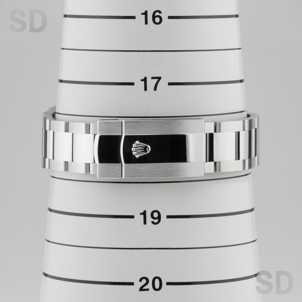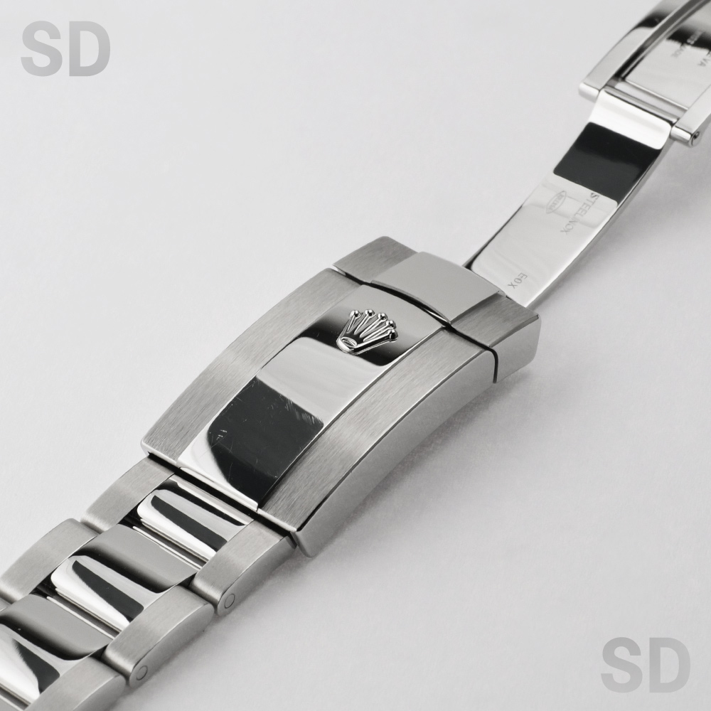 付属品にシリアルタグ(白タグ)がございますが、メーカー管理型番号を読み解くと出荷当時はジュビリーブレスレットが装備されていと思われ、後から純正のオイスターブレスレットへ交換されたものと推測されますが、本来のブレスレットおよび交換に対する明細書等はございませんのでご了承ください。
