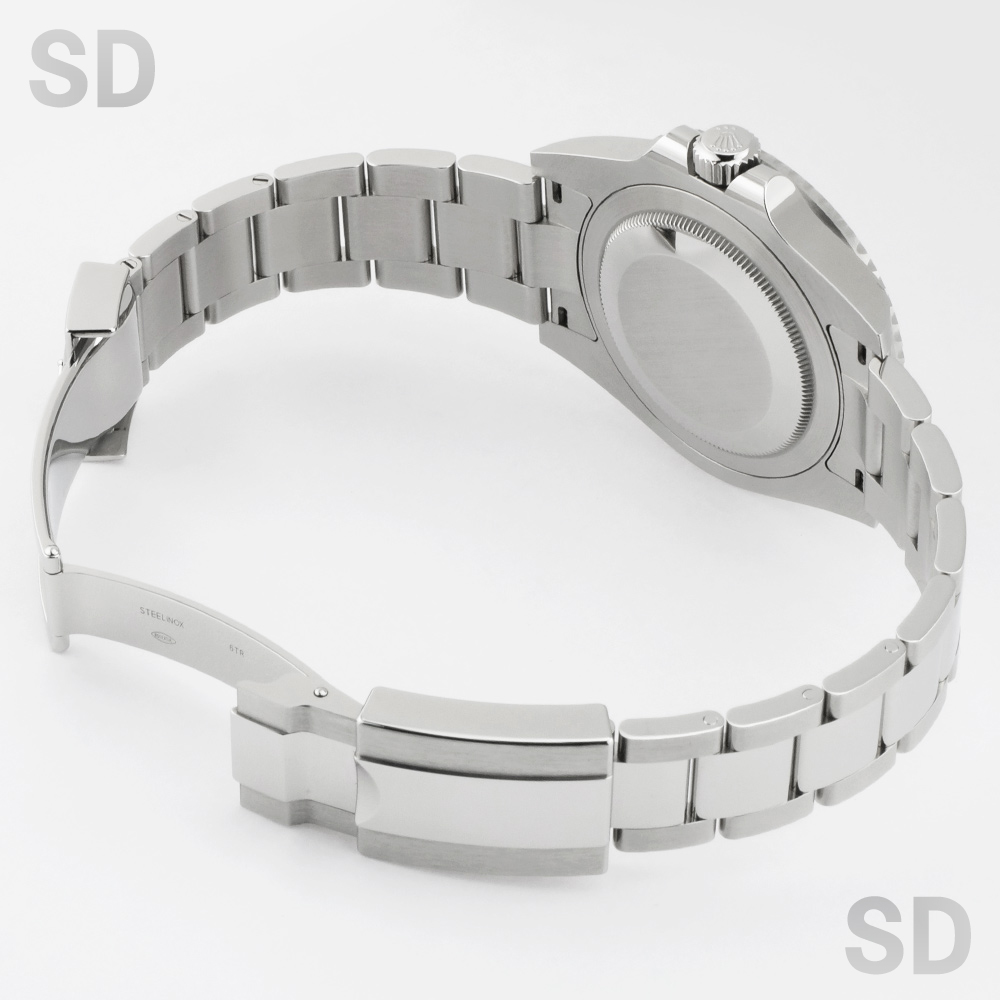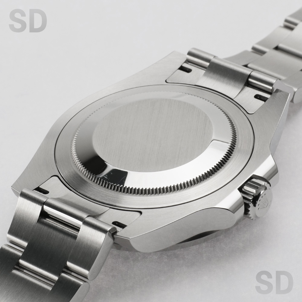 なお、当店では外装の研磨仕上げは行っておらず、ノンポリッシュの状態にてご案内しております。ベゼル外周やケースサイド、裏蓋、バックル、クラスプ裏周辺などに、使用や保管に伴う擦り傷や小傷が残っておりますが、目立つ打痕や深い傷などの特筆すべきダメージは見受けられません。全体としては良好なコンディションを維持しております。