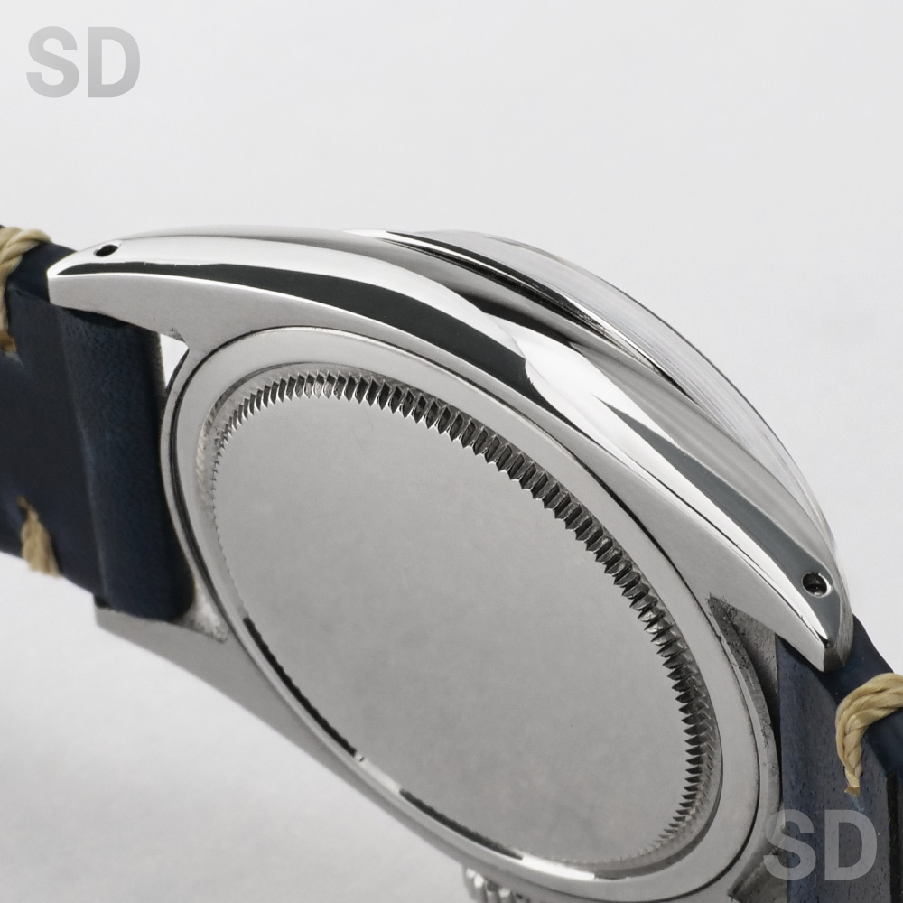 手巻きで小振りなオイスターデイト。製造期間は長く1950年代後半〜1980年代後半まで沢山の方に愛されてきたモデルです。日付を搭載しながらも最後まで手巻き式仕様とされており、このモデルの生産終了をもってロレックスでのオイスターケース手巻き式腕時計は終了となります。毎日巻き上げる事で愛着が湧いてくる手巻き時計。ヴィンテージ入門時計としてもオススメです。