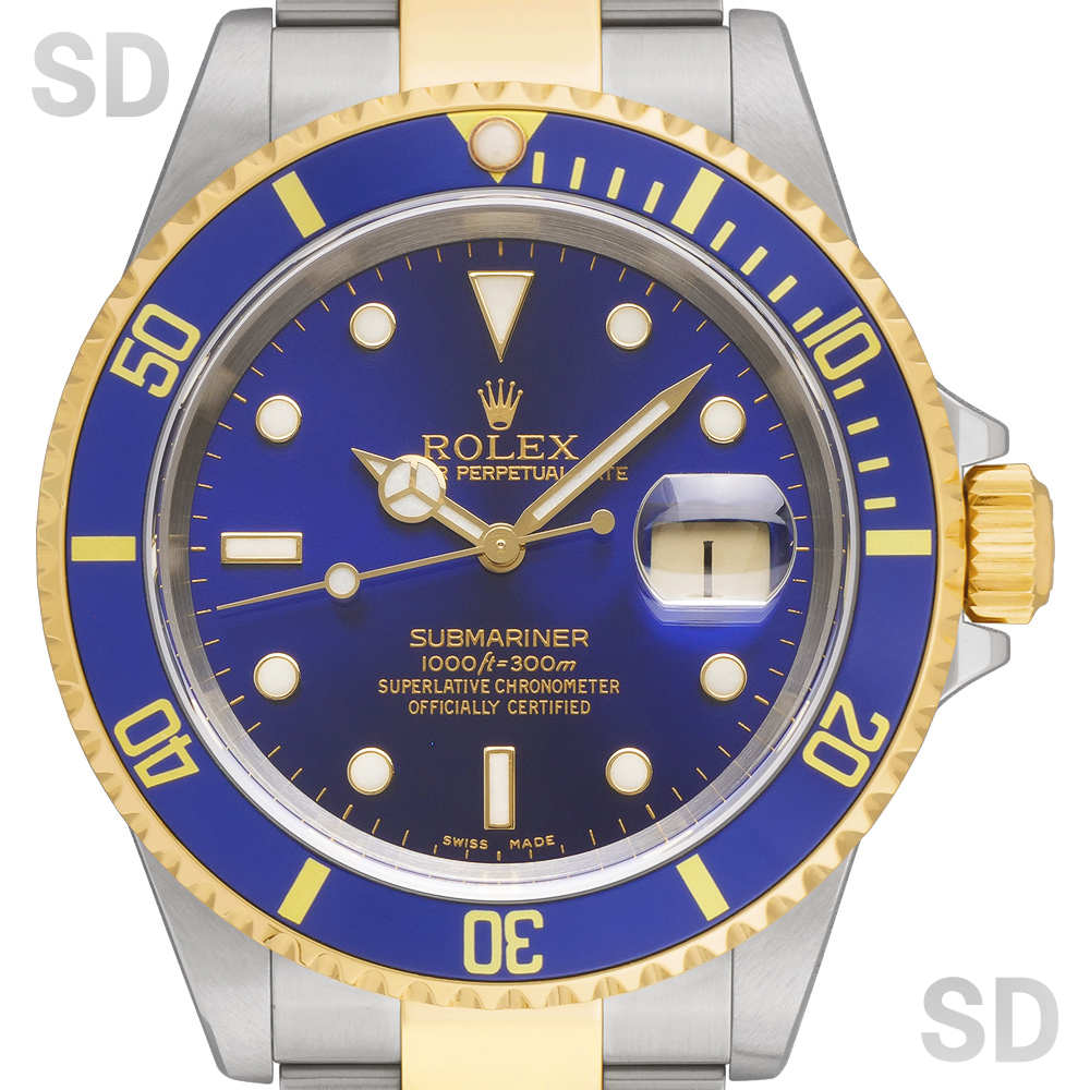 1988年頃より2009年まで製造されていた、サブマリーナーシリーズの16613。サブマリーナーのコンビモデルといえば青と黒のカラーリングによって「青サブ」「黒サブ」と呼ばれ愛されている定番モデル。その中でも青サブは海を連想させるカラーであり現在でも圧倒的な人気を誇ります。ダイバーズウォッチとして300m防水の実用性も兼ね揃えており、比較的ラフにお使いいただける1本です。