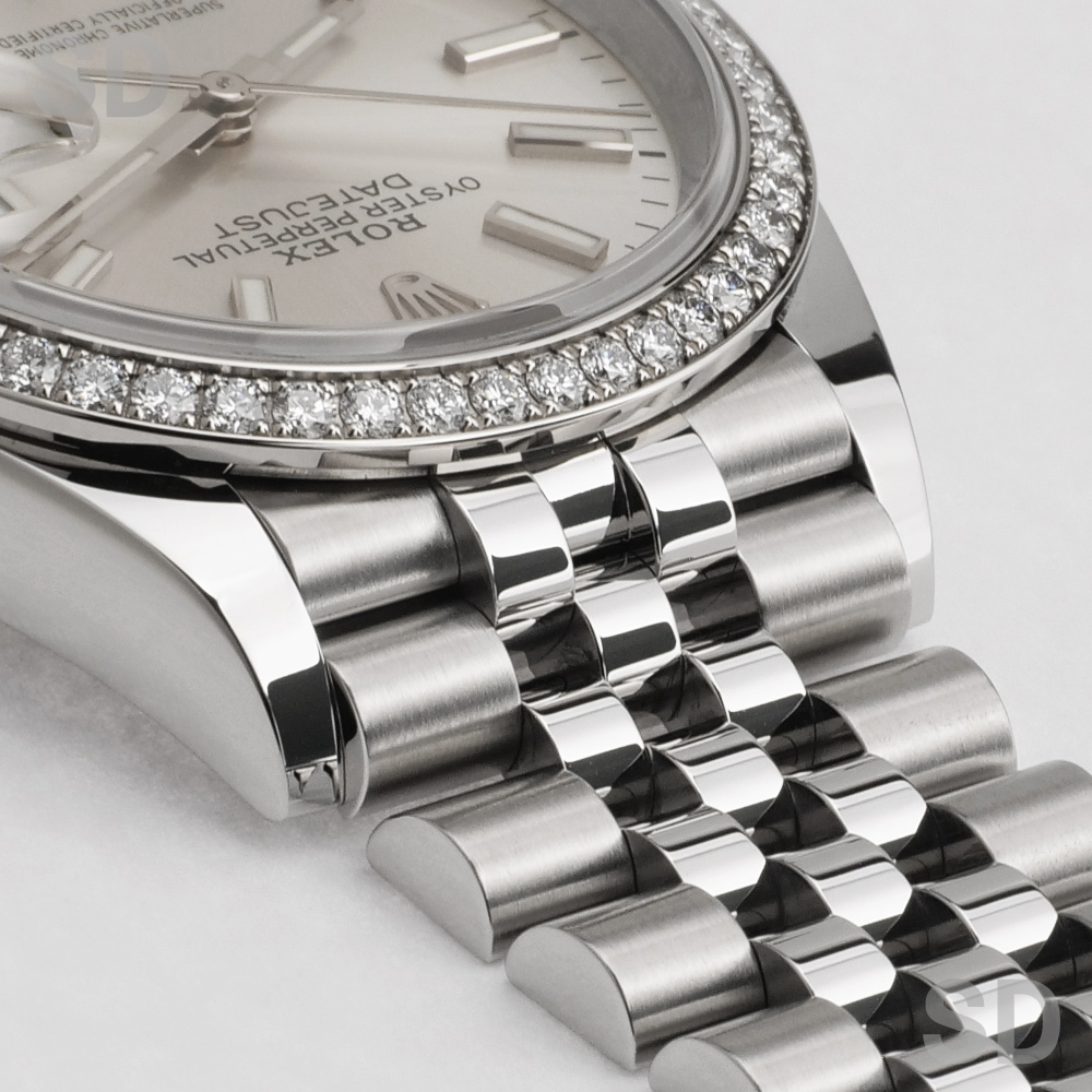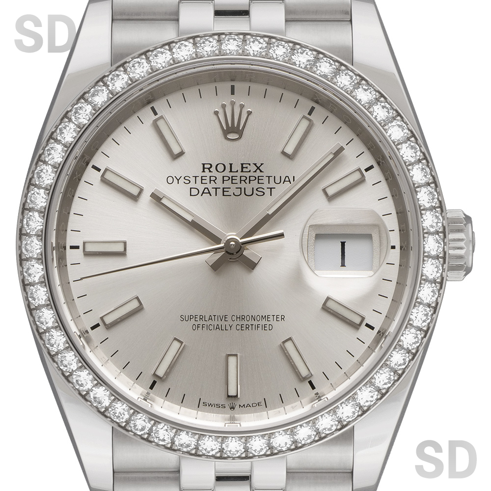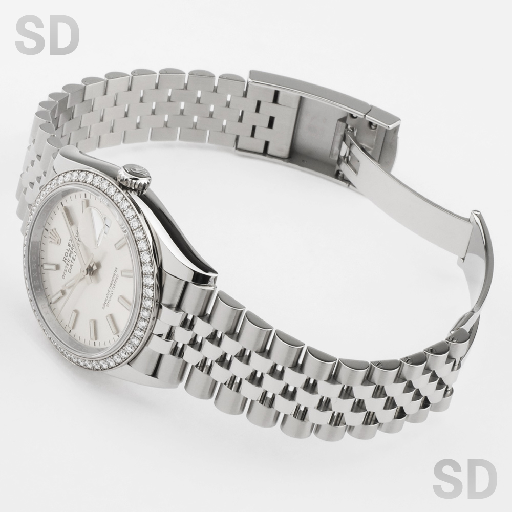 本モデルは、ホワイトゴールド製のダイヤモンド入りベゼルとステンレススチールによるロレゾール(コンビ)仕様に、ブランドを象徴するジュビリーブレスレットを採用。シルバーダイアルは控えめで上品な印象を与え、ダイヤモンドベゼルの輝きをより際立たせます。実用性と華やかさを兼ね備えた、デイトジャストならではの魅力を体現するモデルです。