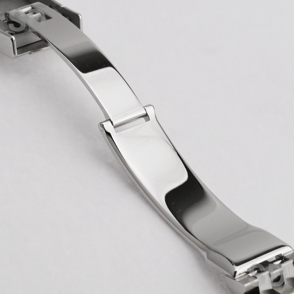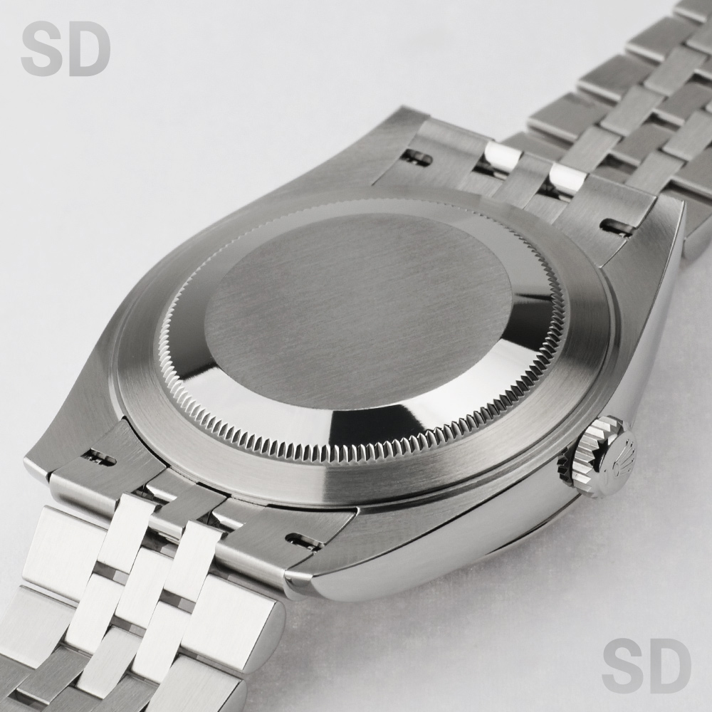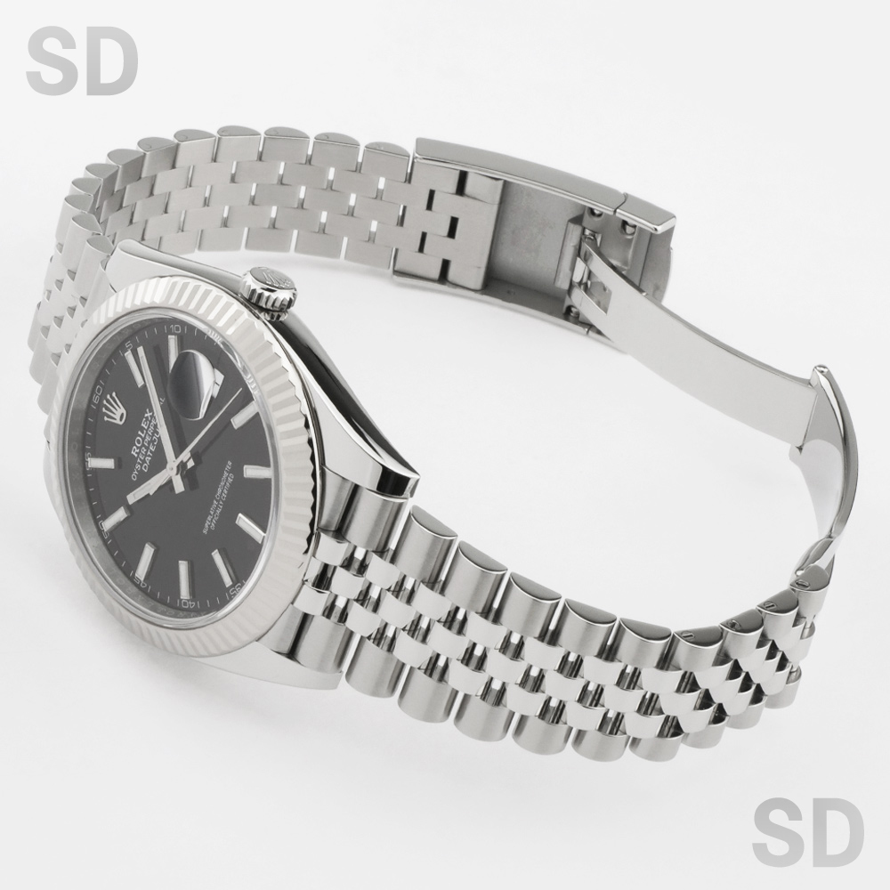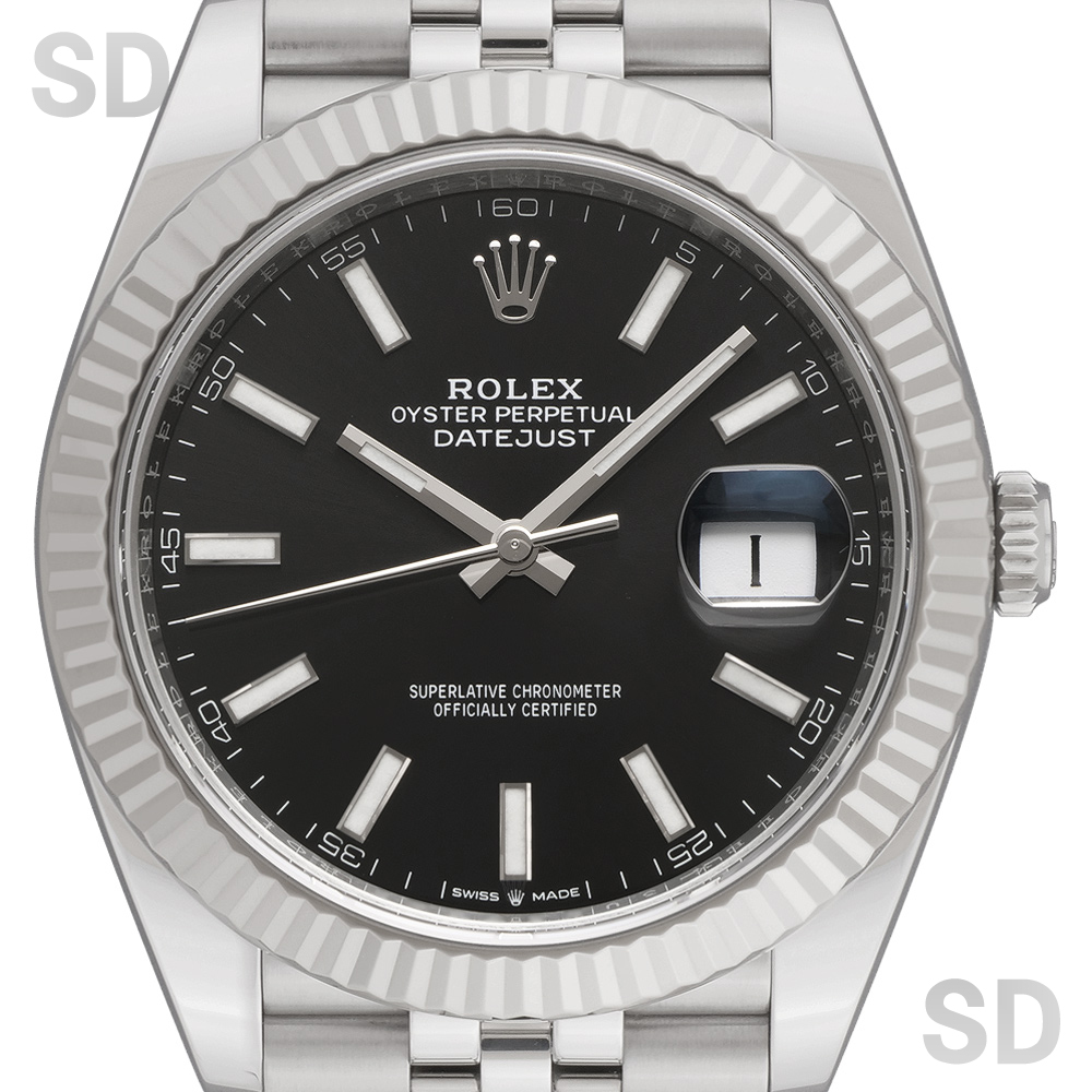 本モデルは、ホワイトゴールド製のフルーテッドベゼルとステンレススチールによるロレゾール(コンビ)仕様に、ブランドを象徴するジュビリーブレスレットを採用。文字盤にはサンレイ仕上げが施されたブライトブラックダイアルを備え、上品な光沢と深みのある表情が、全体の洗練された印象を一層引き立てます。BR>