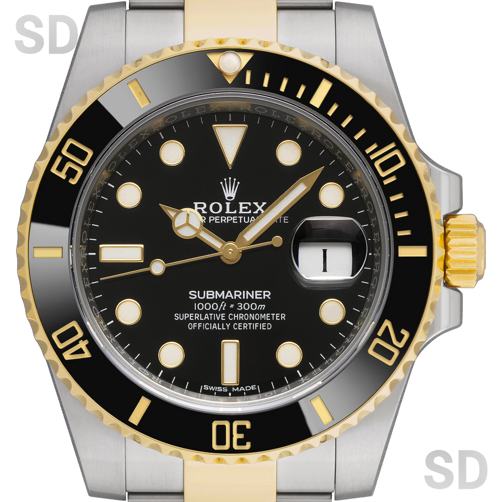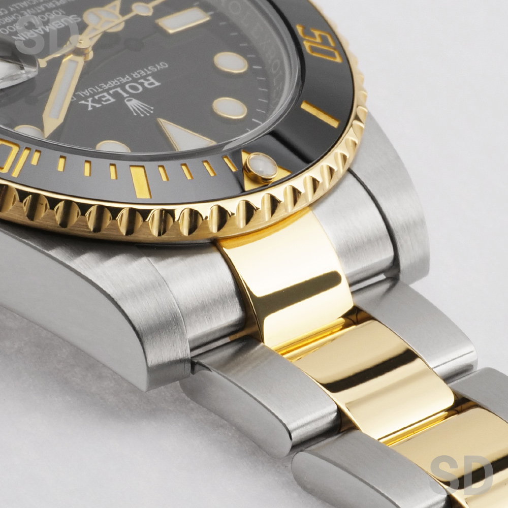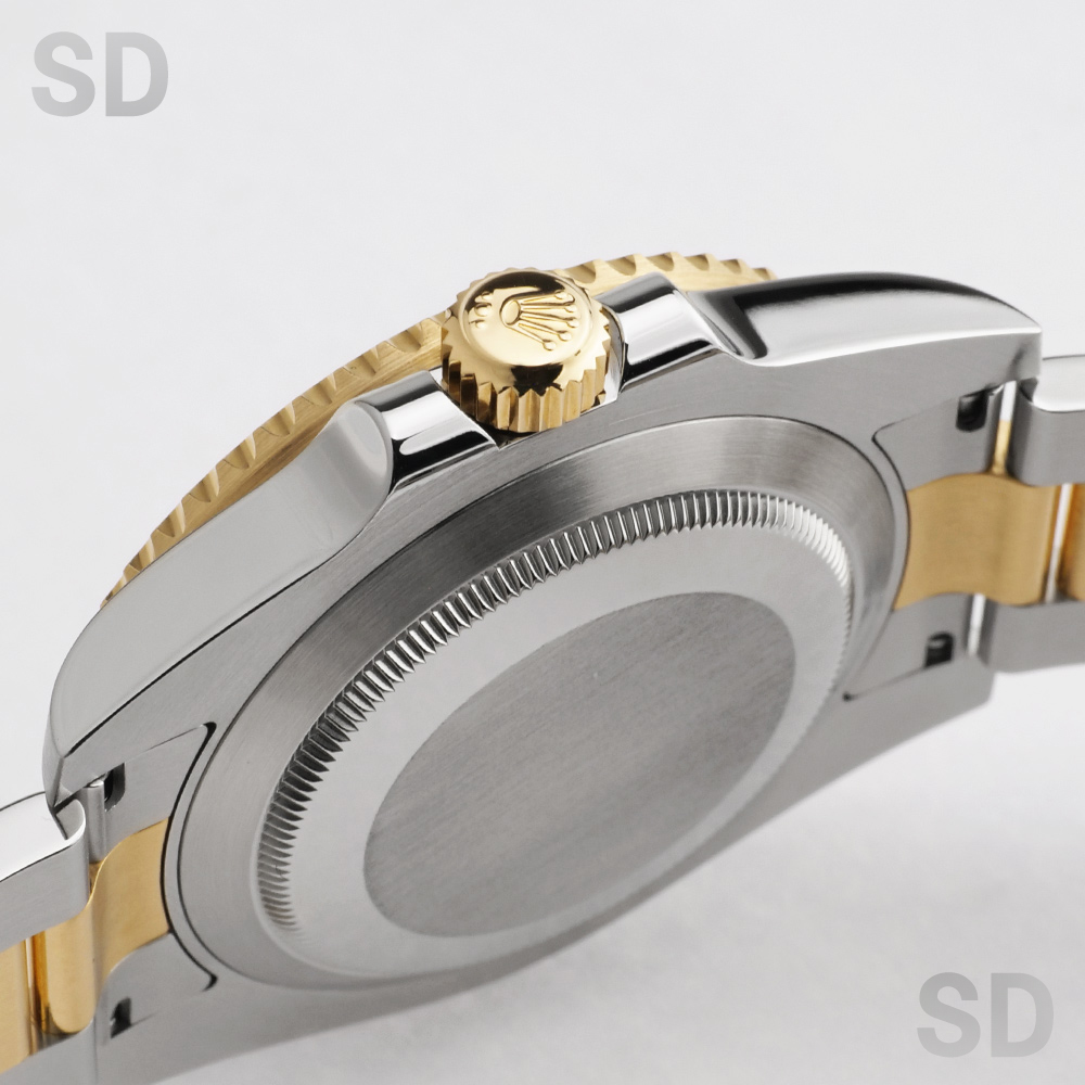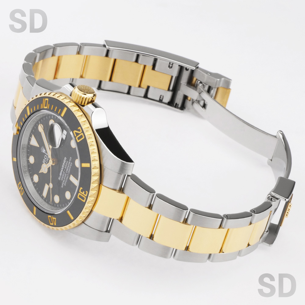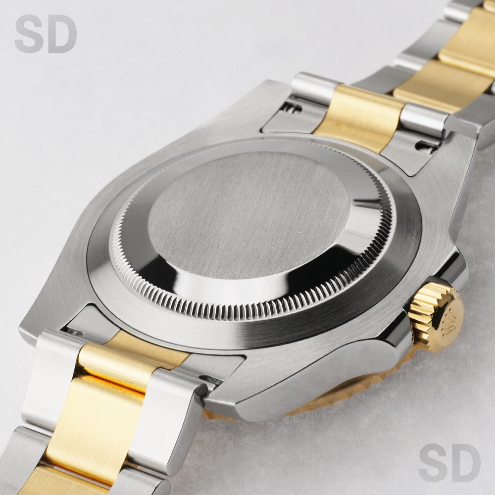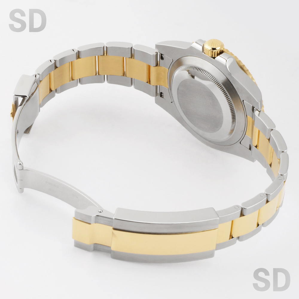 現在は生産が終了している本モデルは、ステンレススチールと18Kイエローゴールドを組み合わせたロレゾール(コンビ)仕様が特徴で、セラクロムベゼルを初めて採用した世代として、サブマリーナーの進化を象徴する重要な位置付けのモデルです。ブラックダイアルとブラックベゼルの組み合わせにより、高級感と力強さを兼ね備えたデザインに仕上がっております。